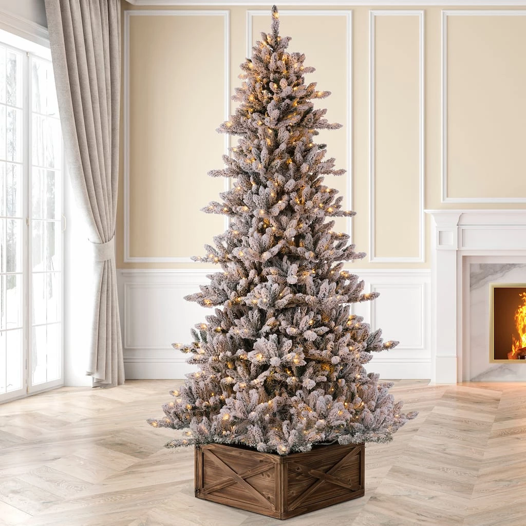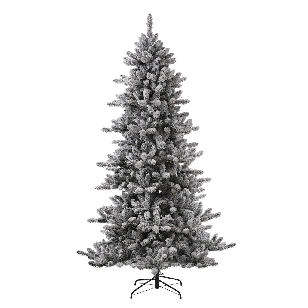 This 7.5ft. pre-lit snow flocked Fir Artificial Christmas tree creates a unique wintery feel. It will be an eye-catching addition to any room during the Christmas holidays.