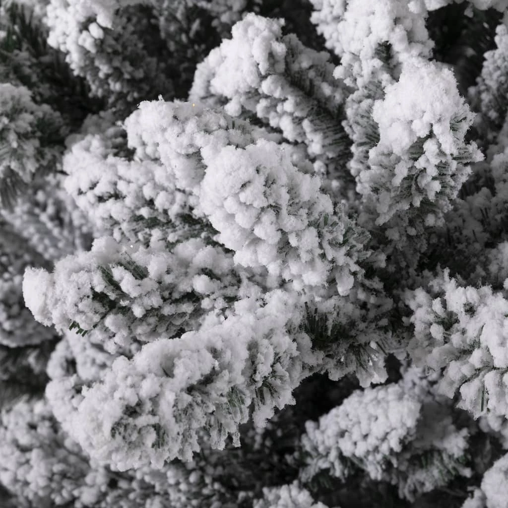 This 9ft. pre-lit snow flocked fir artificial Christmas tree creates a unique wintery feel. It will be an eye-catching addition to any room during the Christmas holidays.