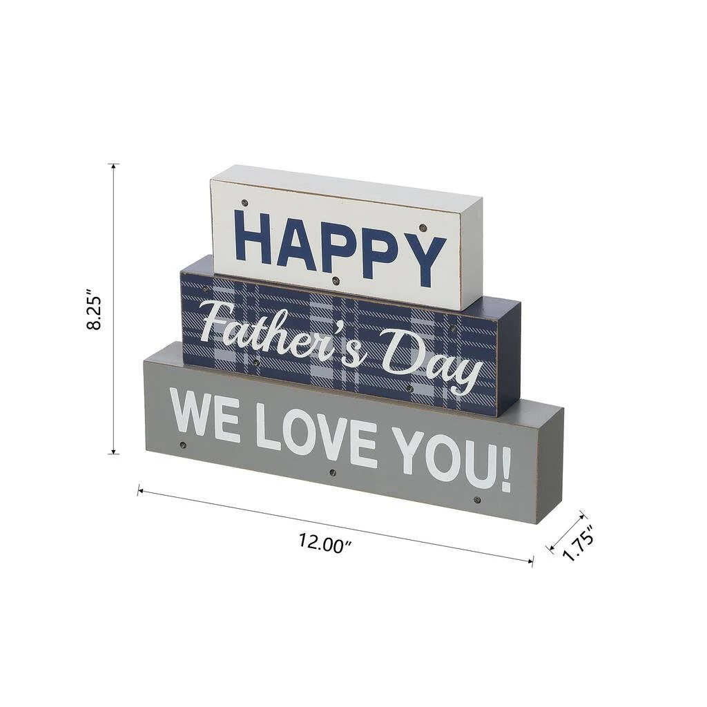 The blocks are skillfully crafted by hand starting with cutting the MDF to size, sanding the raw materials and hand painting the base. It has 10 LED lights on surface with message of “Happy father’s Day, we love you” on colorful background. The lettering with dark blue and white is sure to send a warm atmosphere for the festive season.