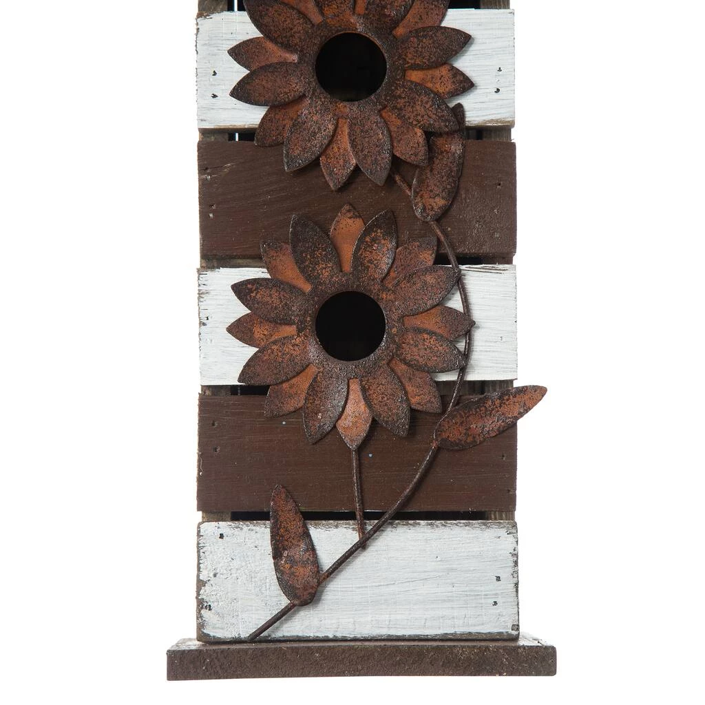 This antique and stylish hand-crafted distressed birdhouse constructed of solid wood pallets and embellished with 3D metal flowers brings rustic charm and fun to any of your garden, backyard or patio. It will also offer a safe and sweet home for your lovely small feathered friends.