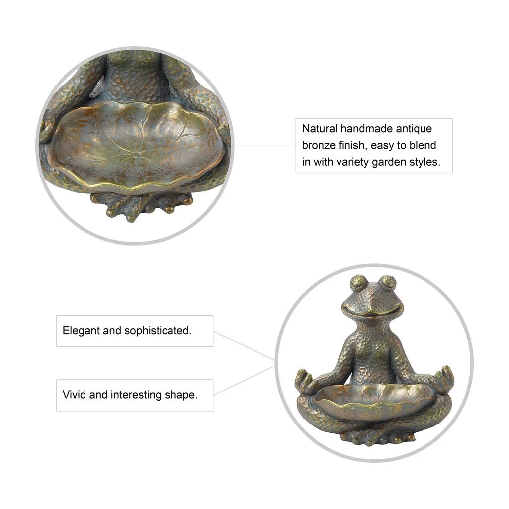 Embrace all the charm and whimsy of spring with this elegant frog statue. The handmade antique bronze and embossed finish give a sense of vintage and superior touch. This frog statue is a perfect decorative figurine that is sure to highlight your garden appearance, also a great gift for a nature lover!