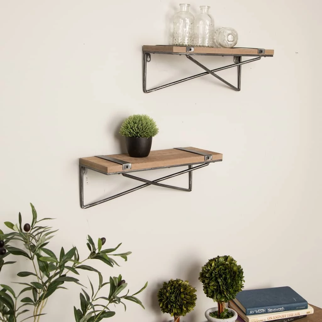 This shelf set by Glitzhome is multifunctional. Put it in your room for placer other decorative items or toiletries. Great for kitchen bathroom and storage room organization. Gain more space in the cabinet, pantry room or even open space. No matter where you mount these rustic floating shelves, they are all look amazing. This sturdy wall mounted accent shelf has metal brackets and wood shelf boards.