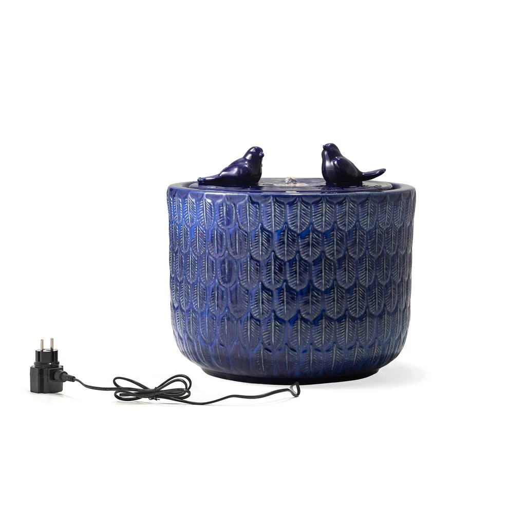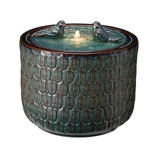 Create a calming oasis that brings an artistic touch to your space with this chic ceramic fountain. It features an elegant glaze finish that shows the charm of kiln-fire. With water flowing across the front wall and spilling into the bottom basin, the soothing sound of cascading water helps to create a relaxing atmosphere. This versatile fountain will be a delightful addition to any of your garden, patio, deck, porch or home spaces.