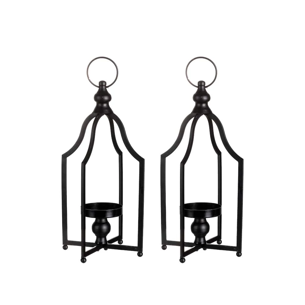 Set of two small same size lanterns are crafted of premium metal with black metal top ring, they will provide you a safety warm home when lighting with kinds of candles. Simplistic style makes it be incorporated in a variety of different lighting & dΓ©cor themes and suitable for yard, wall, pathway, driveway, shelf, table, bars, patio, porch, etc. The lantern is fit for multiple style of pillar candles, tea-light candles or LED candles.Β