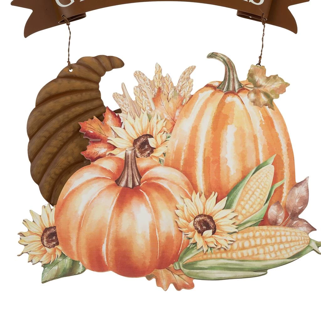 This sign is perfect for the fall and harvest season. The cornucopia’s main body features a hand crafted, colorful look, completed with imperfections for a more natural look.