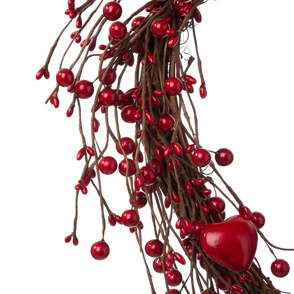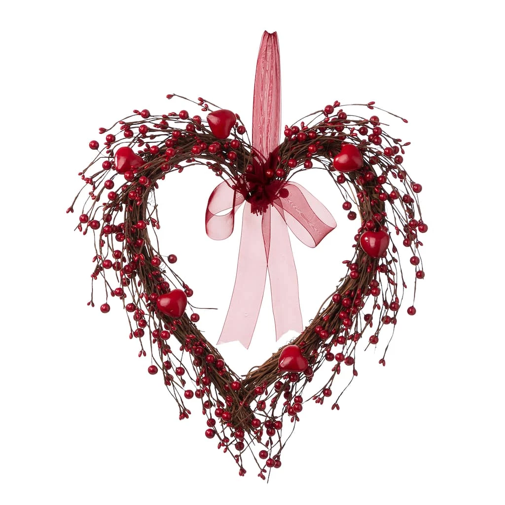 Bring lovely seasonal design to your home using this berry heart wreath. The heart-shaped wreath features a variety of round and heart-shaped berries. Complete with charming addition such as red ribbons, it’s a wonderful touch to your Valentine’s Day dΓ©cor.