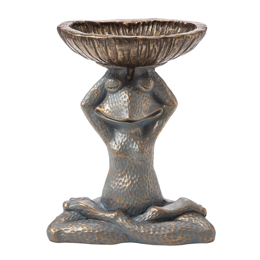 Embrace all the charm and whimsy of spring with this elegant frog statue. The handmade antique bronze and embossed finish give a sense of vintage and superior touch. This frog statue is a great decorative figurine that is sure to highlight your garden appearance, also a great gift for a nature lover!