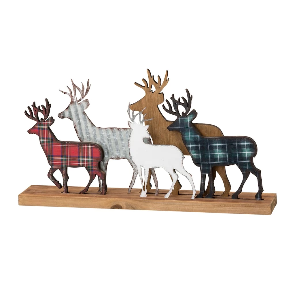 This group of different poses of a reindeer family with a wooden base brings vitality into the Christmas party. Use this to gift loved ones, family or friends.