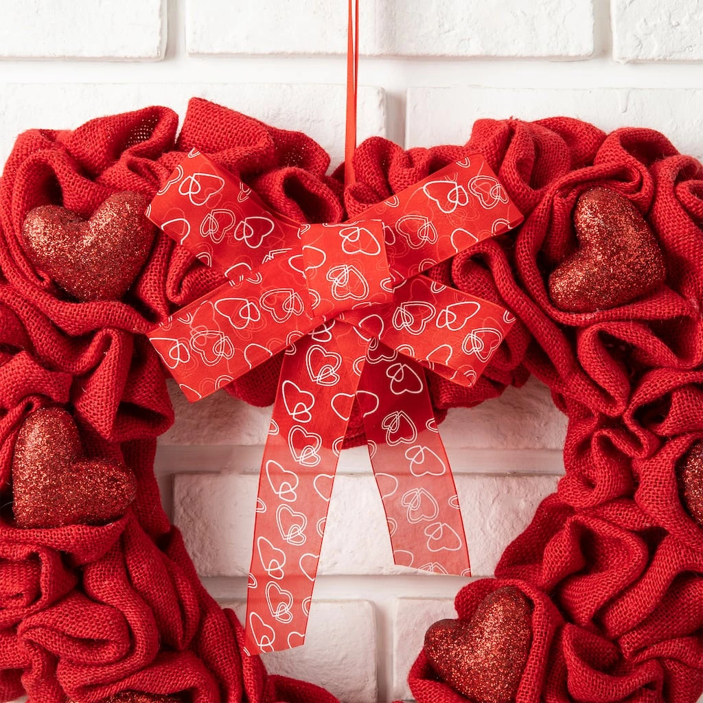 - Heart-shaped wreath with red ribbons