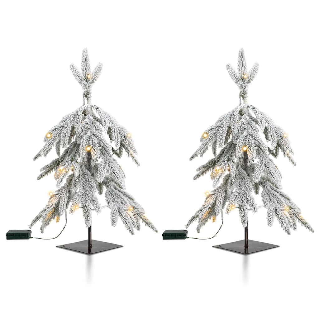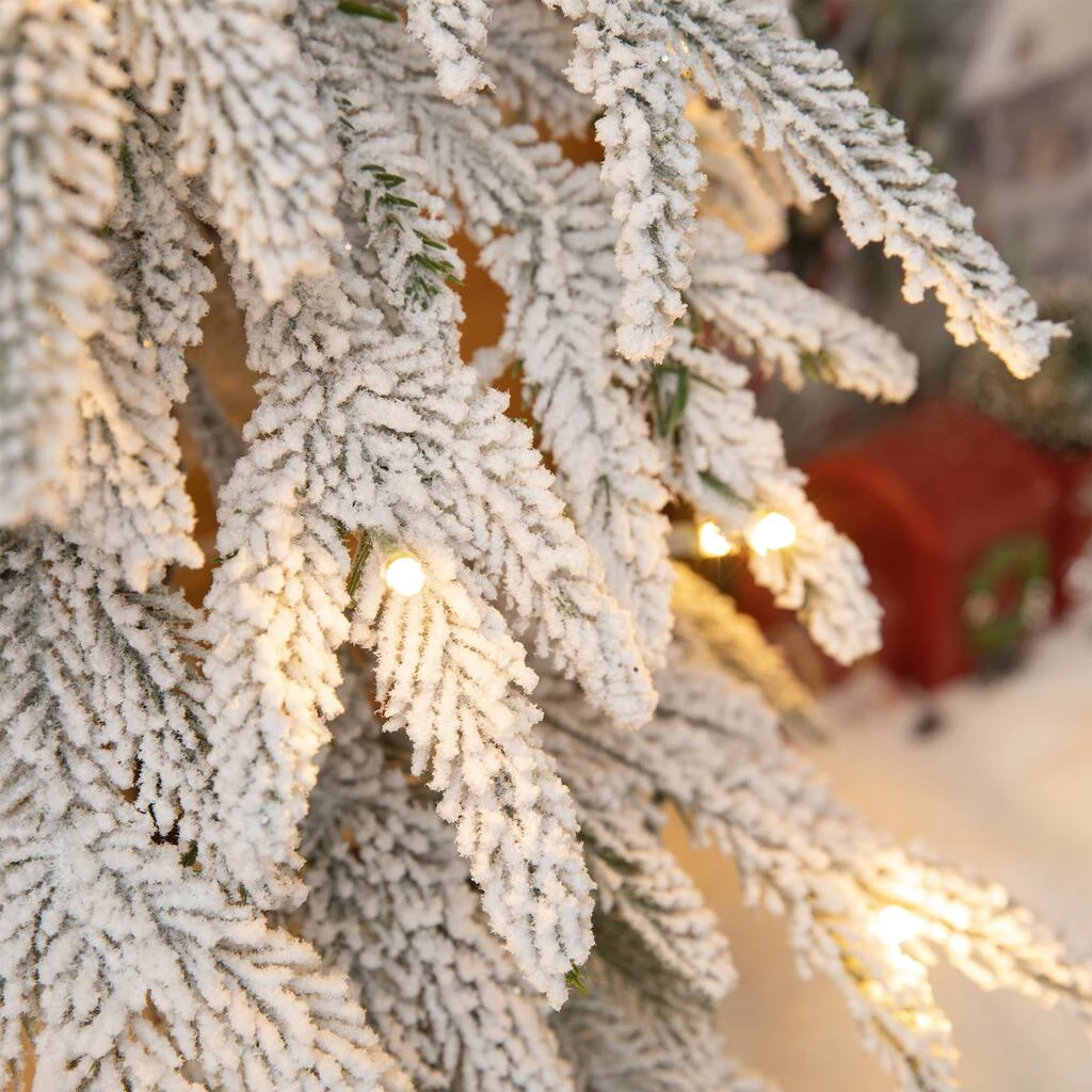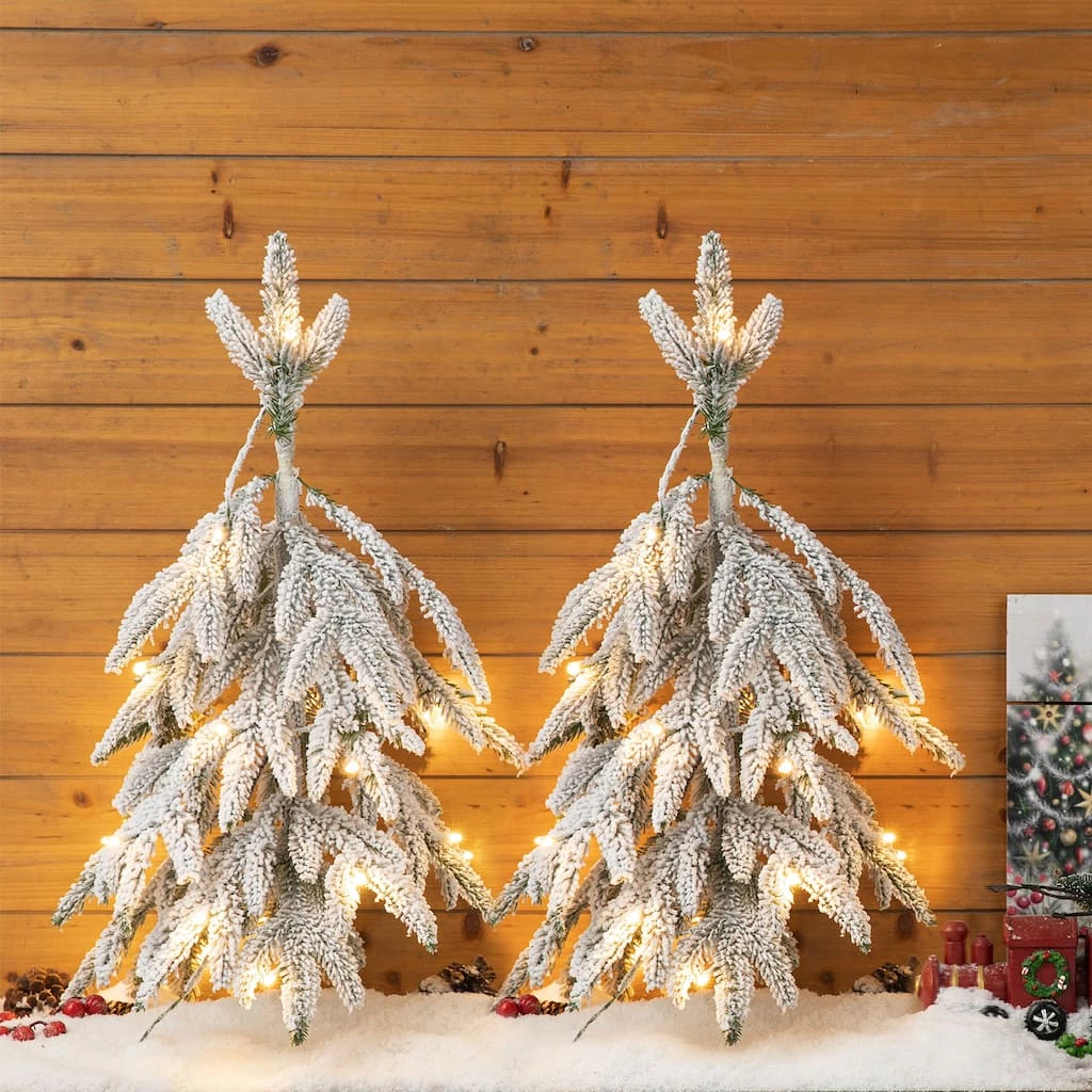 The 2 ft. pre-lit flocked pine artificial Christmas greenery table tree features crafted branch tips to create a warm festival ambiance to any space and daily dΓ©cor for your house and work space.