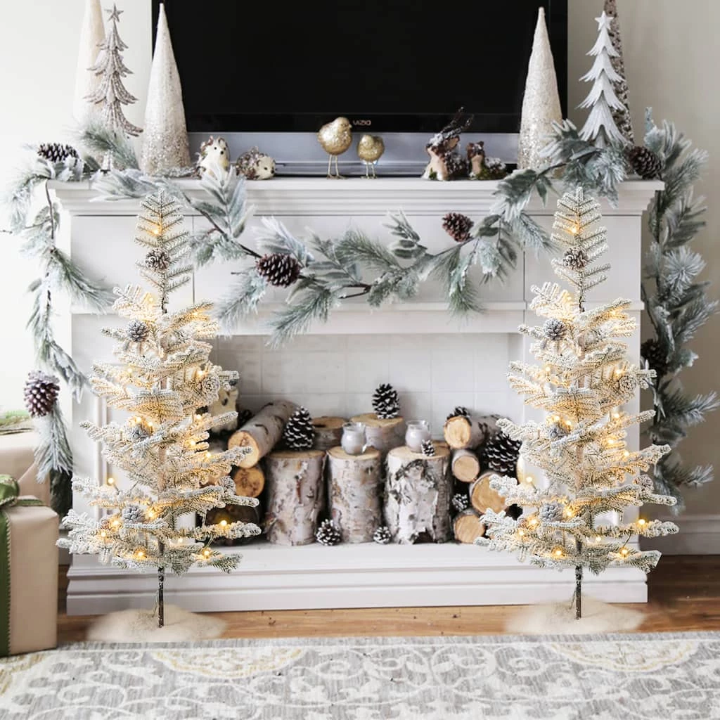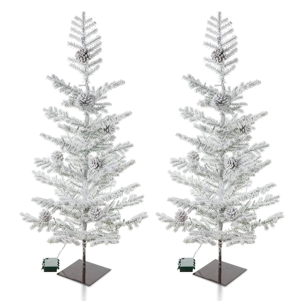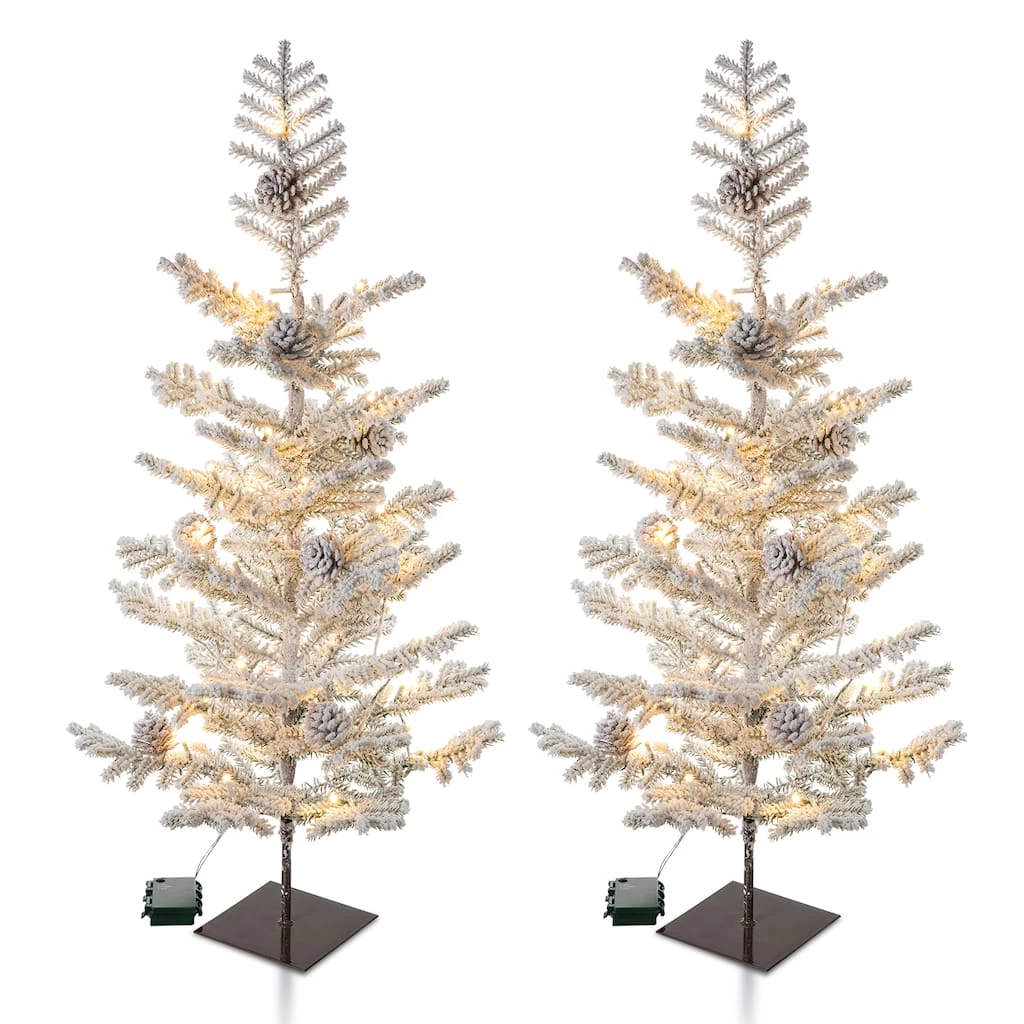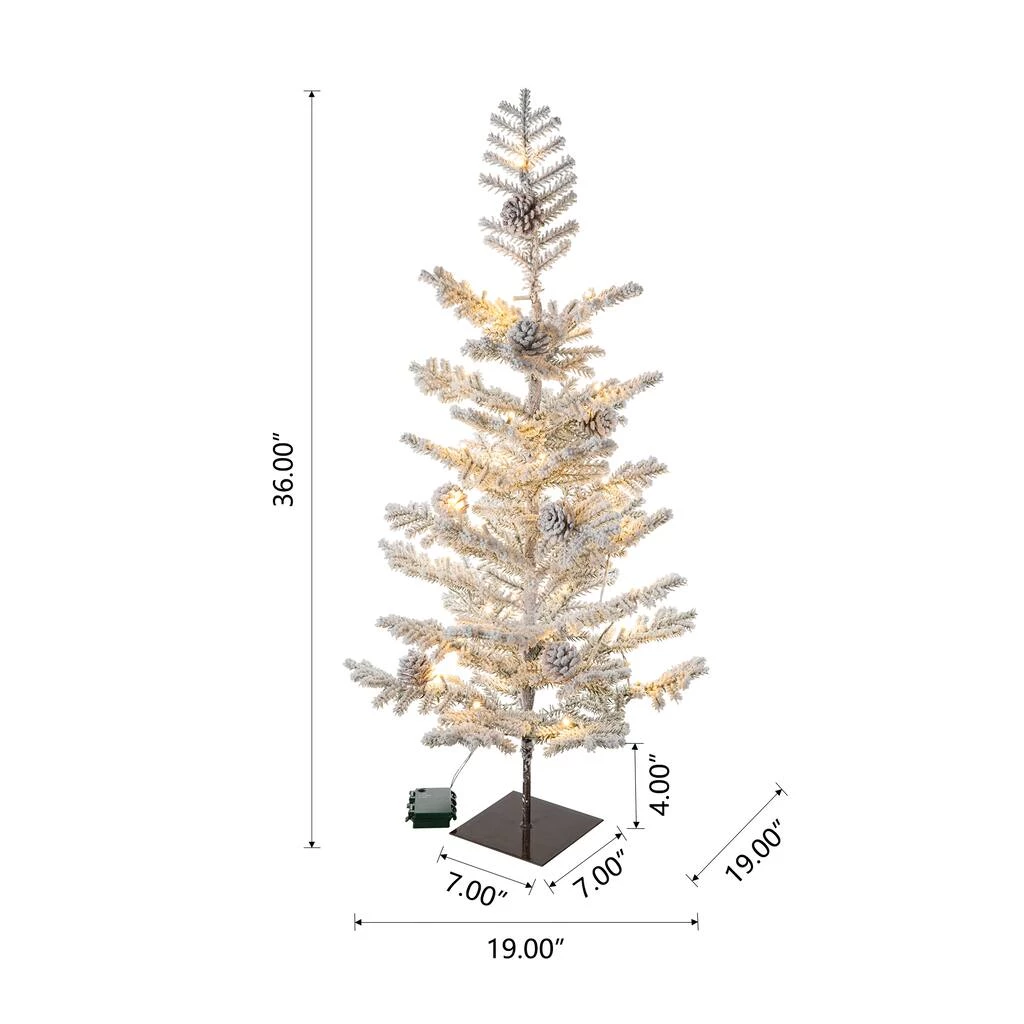 The 3 ft. pre-lit flocked pine artificial Christmas greenery table tree features crafted branch tips to create a warm festival ambiance with pinecone accent to any space and daily dΓ©cor for your house and work space.