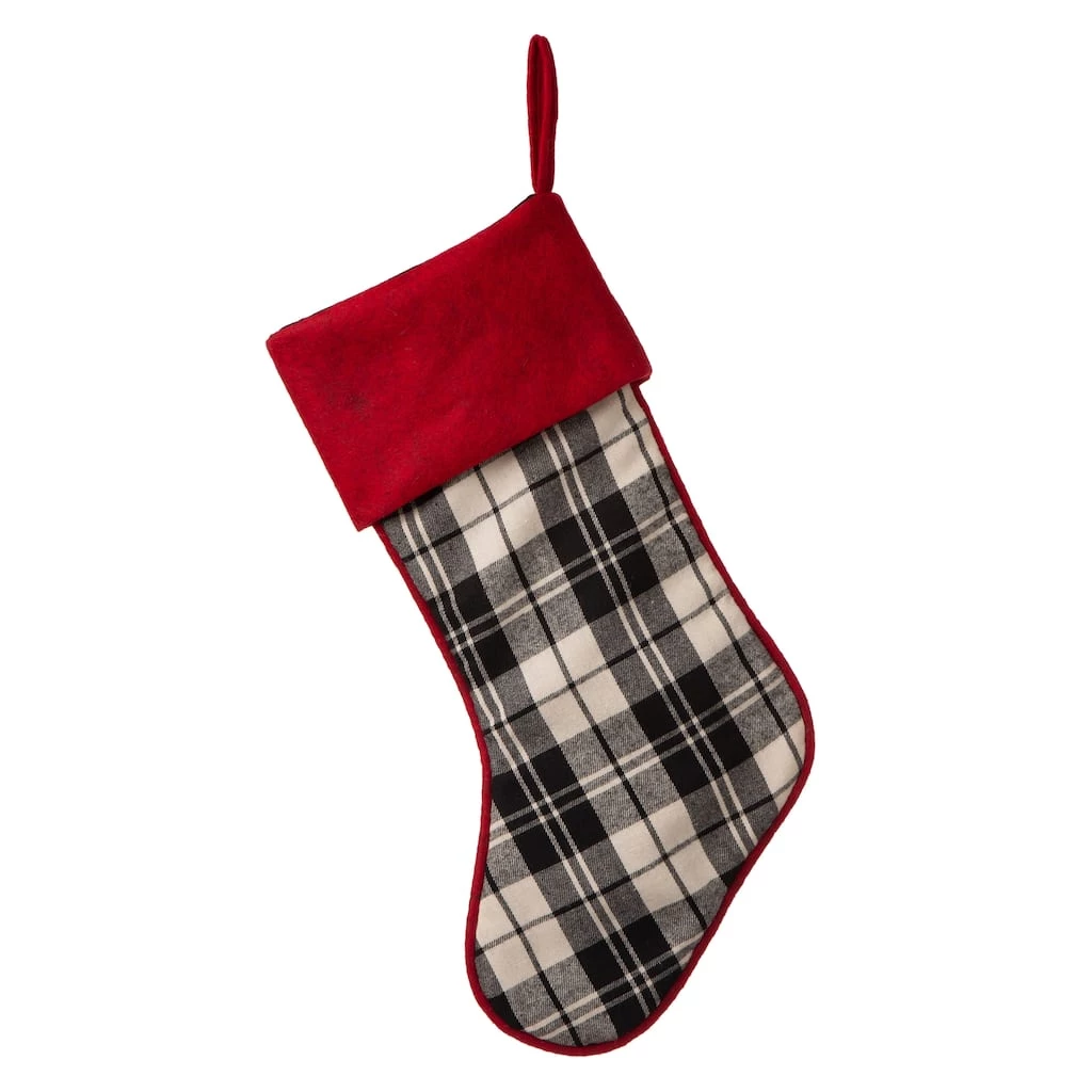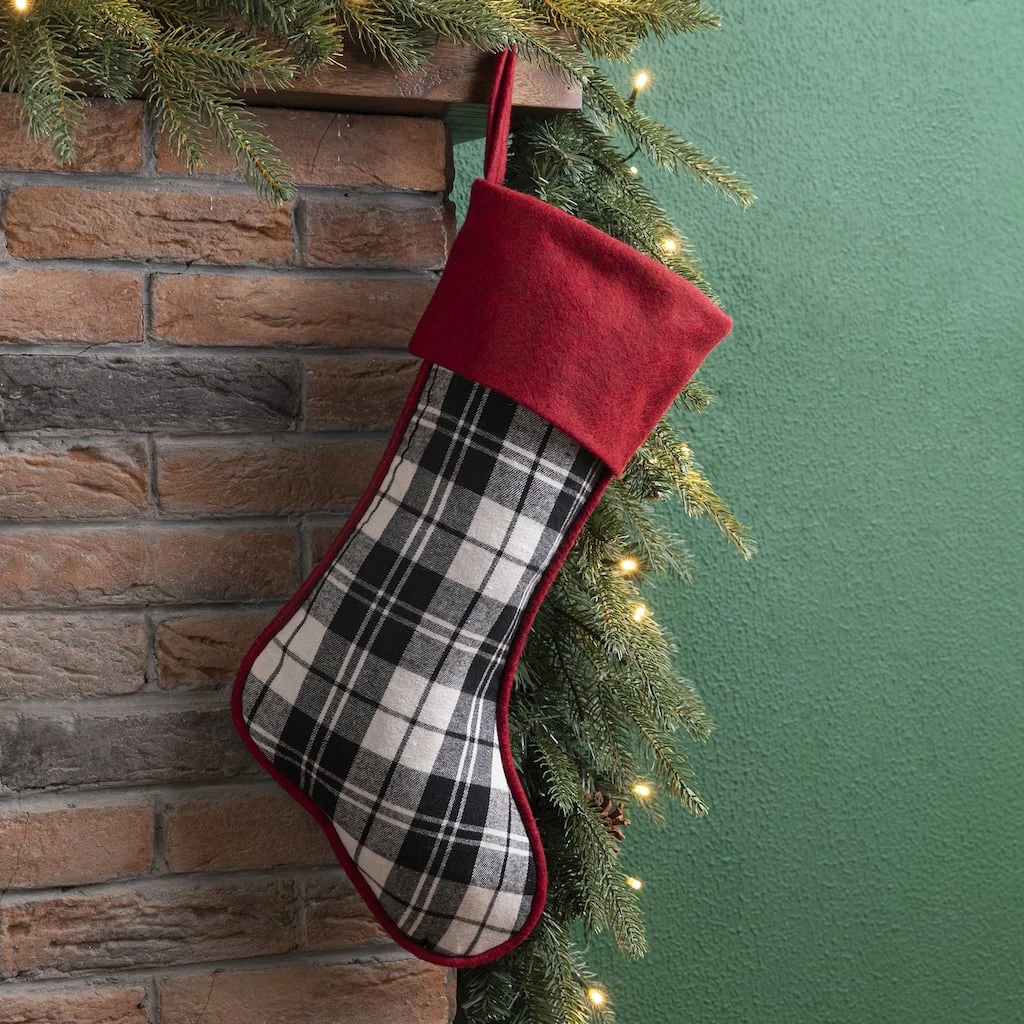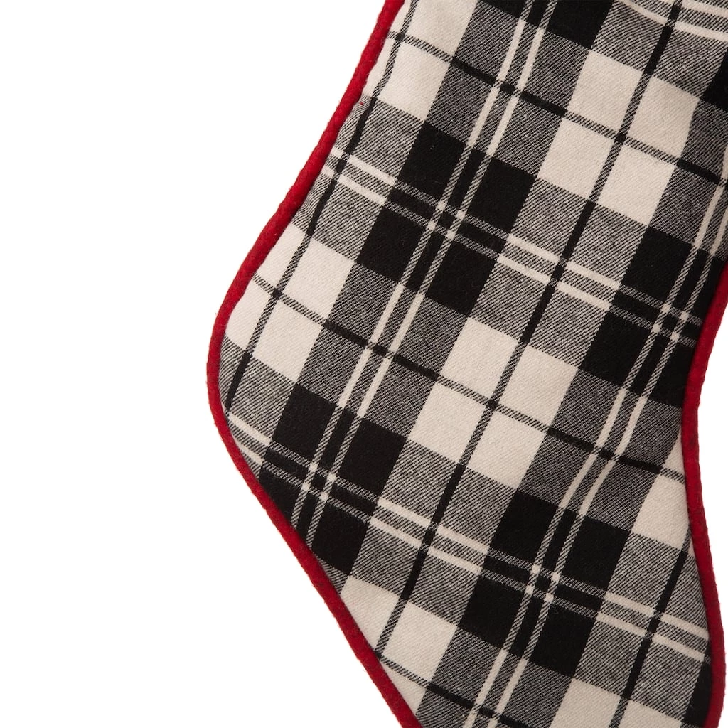 This black and white plaid stocking is perfect for displaying on a fireplace mantel. Customize it with the name of your loved one then fill it with fun holiday stocking stuffers!