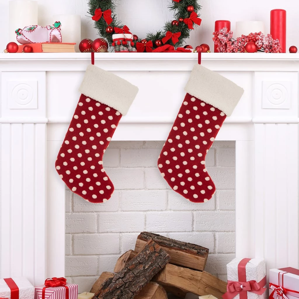 This stocking set has cute white polka dots on a traditional red background. High quality material and exquisite workmanship make it look perfect, not only as a holiday decoration, but as a delivery of your love to your family members. The unique decorative style will provide a festive atmosphere in any room in your house, bringing the handmade charm of a true vintage Christmas.