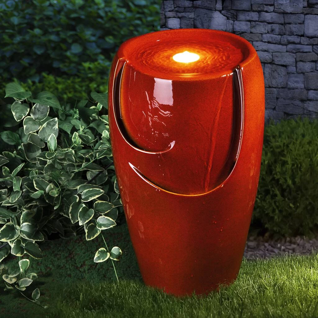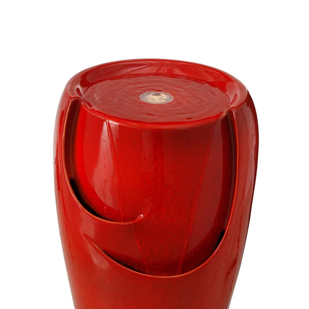 Create a calming oasis that brings an artistic touch to your space with this chic ceramic fountain. It features an elegant glaze finish that shows the charm of kiln-fire. With water flowing across the front wall and spilling into the bottom basin, the soothing sound of cascading water helps to create a relaxing atmosphere. This versatile fountain will be a delightful addition to any of your garden, patio, deck, porch or home spaces.