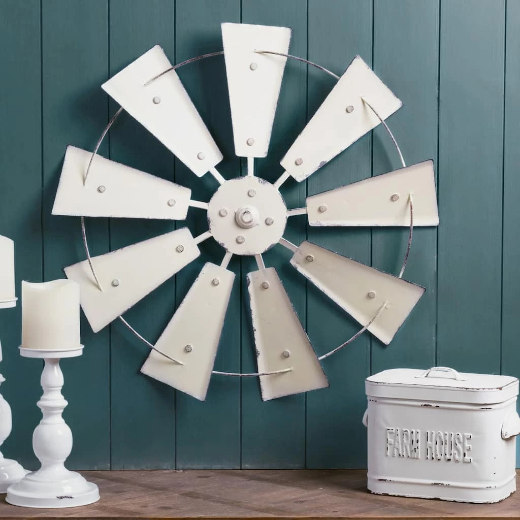 Bring the feel of a rustic farmhouse to your home with this galvanized fan-shaped wall décor. This beige wind spinner is made of premium, 5 mm metal, so it’s sturdy and rustproof. The surface of the spinner has been processed with environment-friendly materials, and is coated with SGS-certified paint. Flanging on both sides give the fan depth. The gourd hole in the back allows for easy hanging.