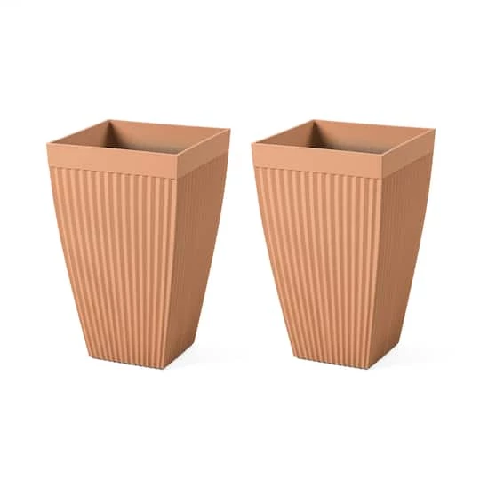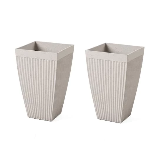 Enhance your indoor or outdoor space with this stylish set of two plastic tapered fluted planters. They’re crafted of 100% recyclable PE and stone mixture, which is eco-friendly and safe. Compared with traditional planters, they’re lightweight, chip-resistant, more durable and with sturdy UV protected structure, ideally for all year around.