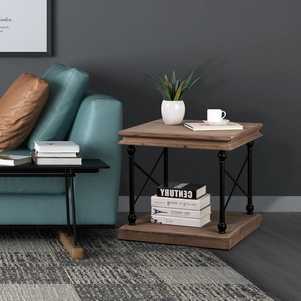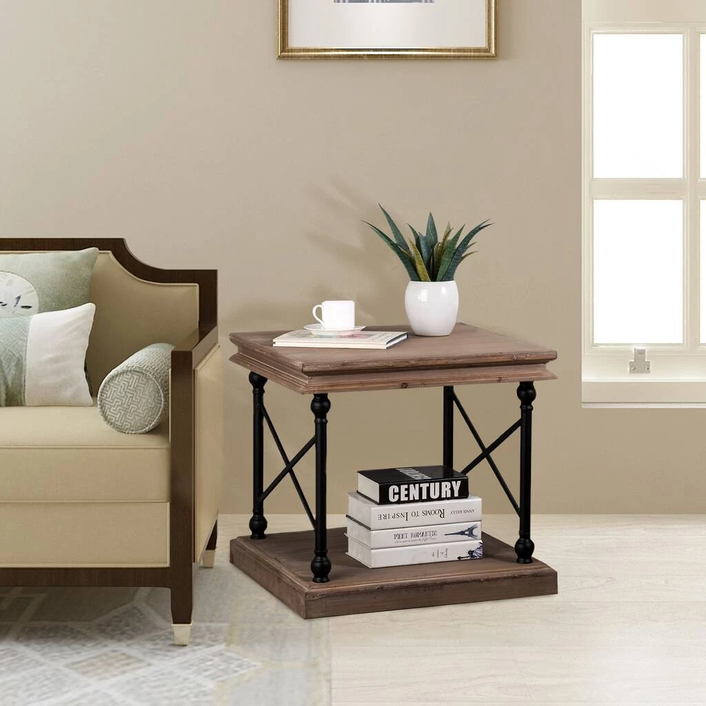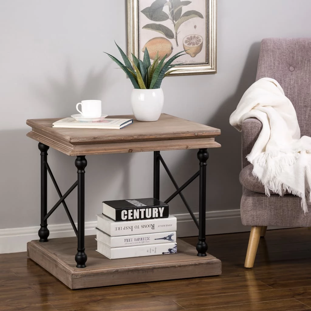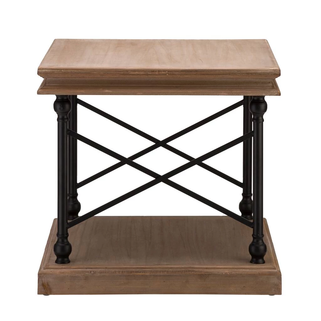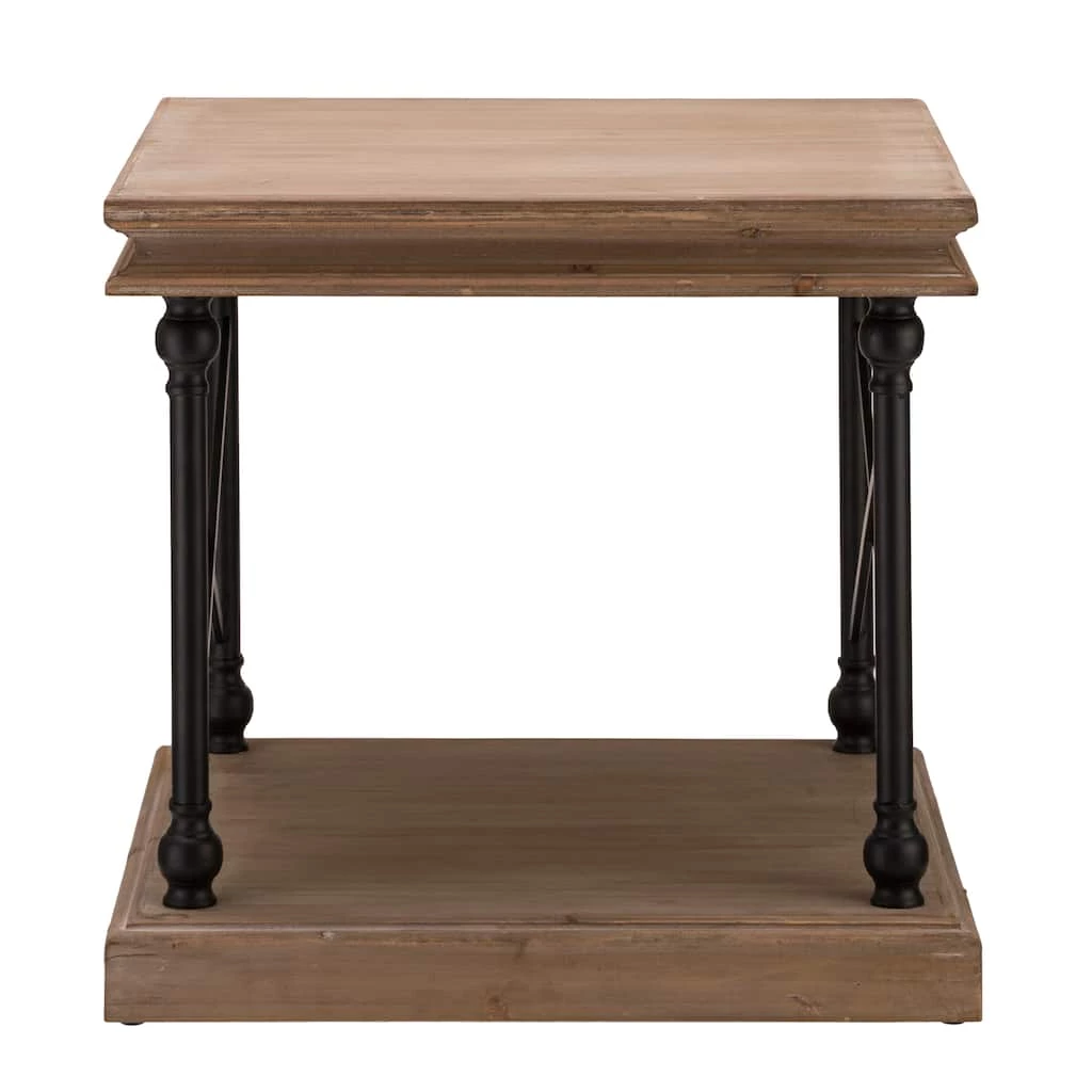 Bring antiqued and country charm to your space with this French vintage antiqued finish accent table. Crafted from Solid firwood and MDF with firewood veneer, the console table features black matte metal pillars with an “X” shape crossbar. French vintage style with an antiqued color suit for your living room well.