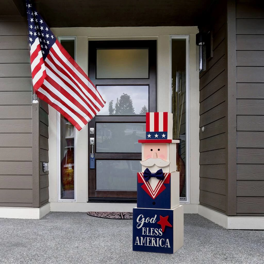 Add a touch of holiday cheer to your home with this handcrafted reversible sign that features an Easter design on one side and a patriotic Uncle Sam 4th of July design on the other. Skillfully crafted by hand starting with cutting the wood to size, sanding down the raw materials and hand painted and then sealed with a protective finish so it looks like a gift box.