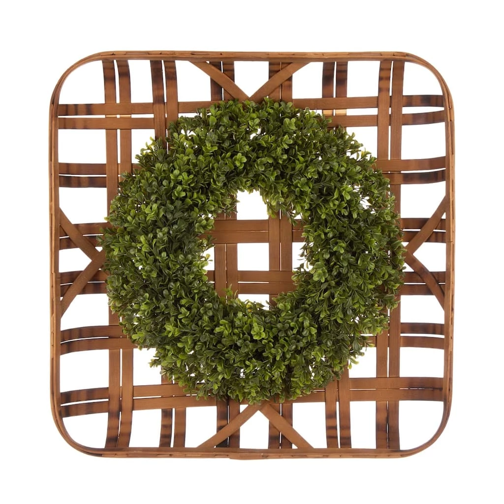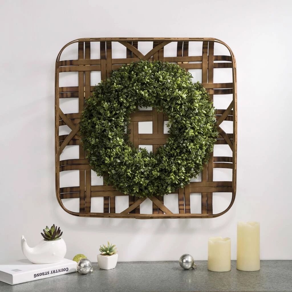 This Boxwood Wreath matched stitched in Tobacco Basket is a perfect group. If you have a room with a lack of natural light, a Tobacco Basket like this is a great option, it has a patina that gives a true vintage look to your dΓ©cor. At the same time, increase the beauty in your home with the Boxwood Wreath. Enjoy the elegance it will add, as well as all of the compliments it will garner throughout the year.