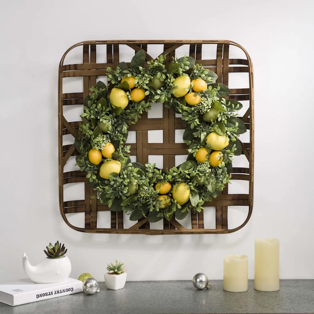 This Greenery Lemon Wreath matched stitched in Tobacco Basket is a perfect group. If you have a room with a lack of natural light, a BambooΒ Basket like this is a great option, it has a patina that gives a true vintage look to your dΓ©cor. At the same time, increase the beauty in your home with the Greenery Lemon Wreath. Enjoy the elegance it will add, as well as all of the compliments it will garner throughout the year.