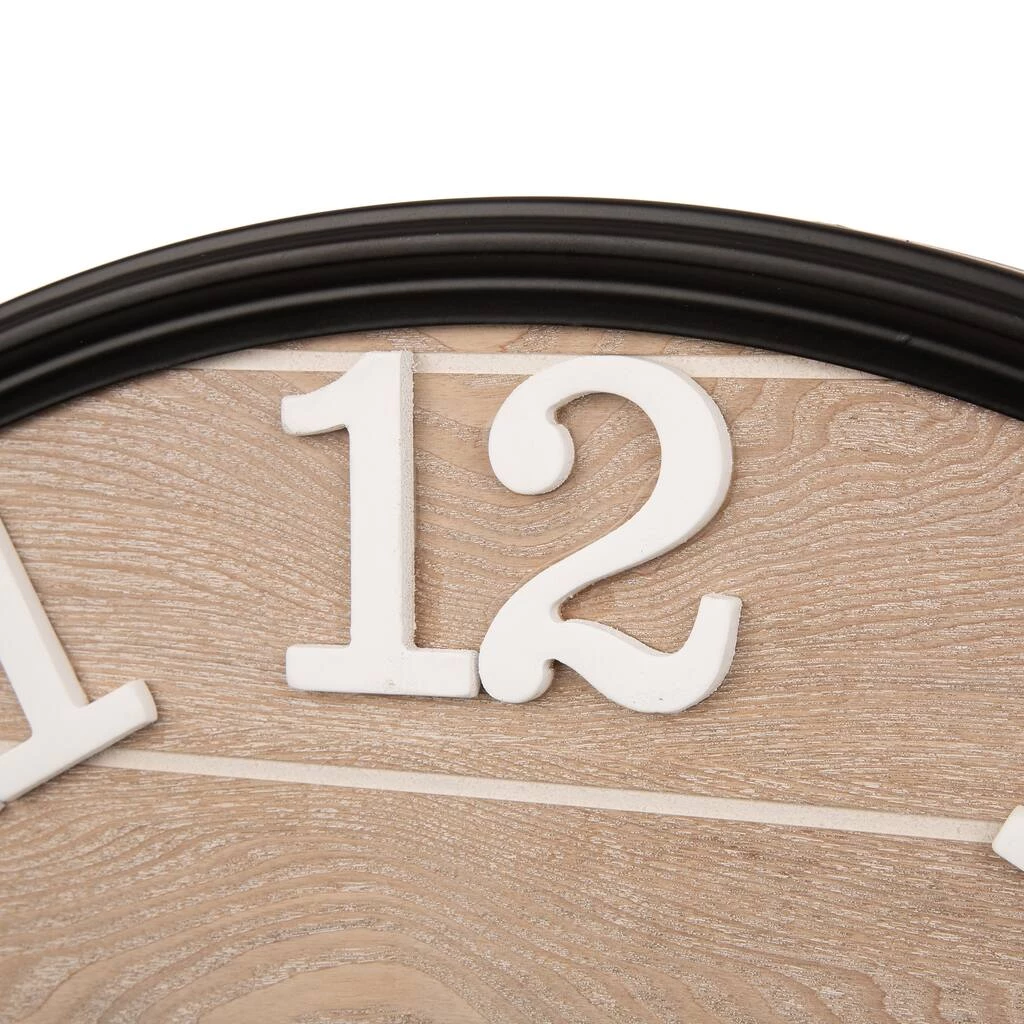 Dress up your house with this beautiful round farmhouse wall clock. This clock is made of natural finished firwood MDF and black metal and can suit any style of your home or office.