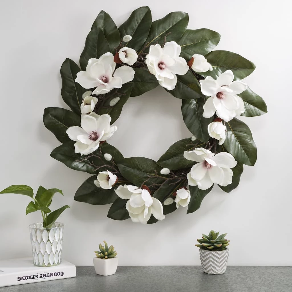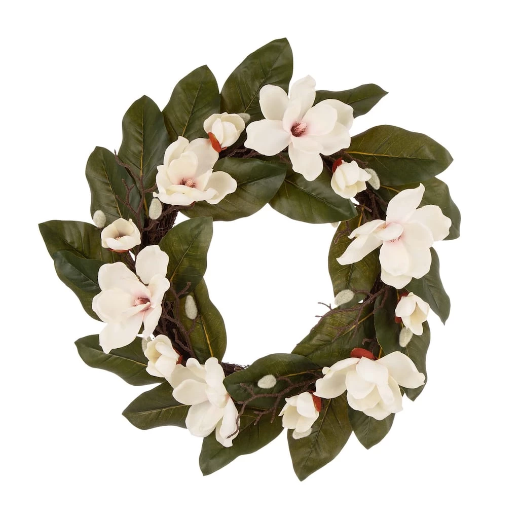 This magnolia wreath maintains its vibrant beauty all year long. It also can be matched with our high quality tobacco basket or window frame to offer an attractive entryway that welcomes your closest family and friends into your home.