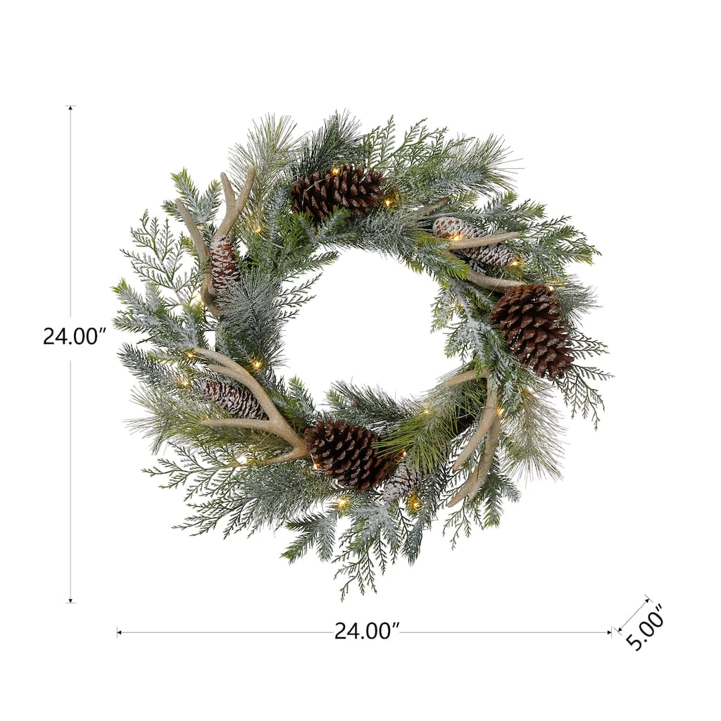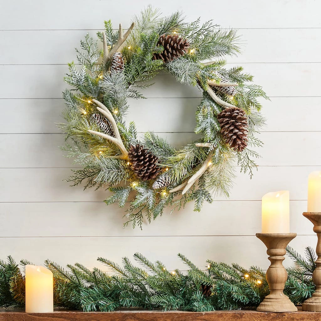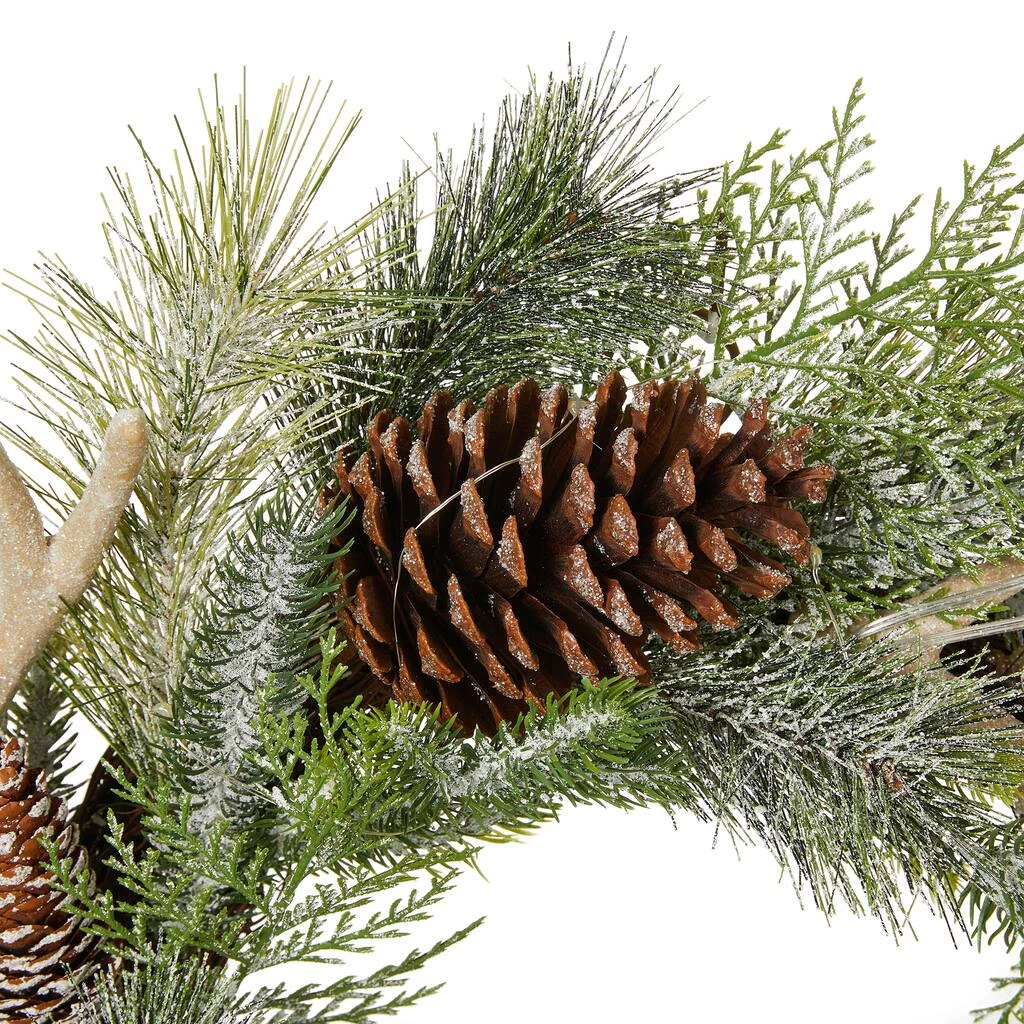 This wreath includes large pine cones, antlers and mixed types of tree needles. It’s perfect for entryway, fireplace, doors, walls and windows and more. The wreath gives you more than just a classic and traditional look of the holiday.Β
