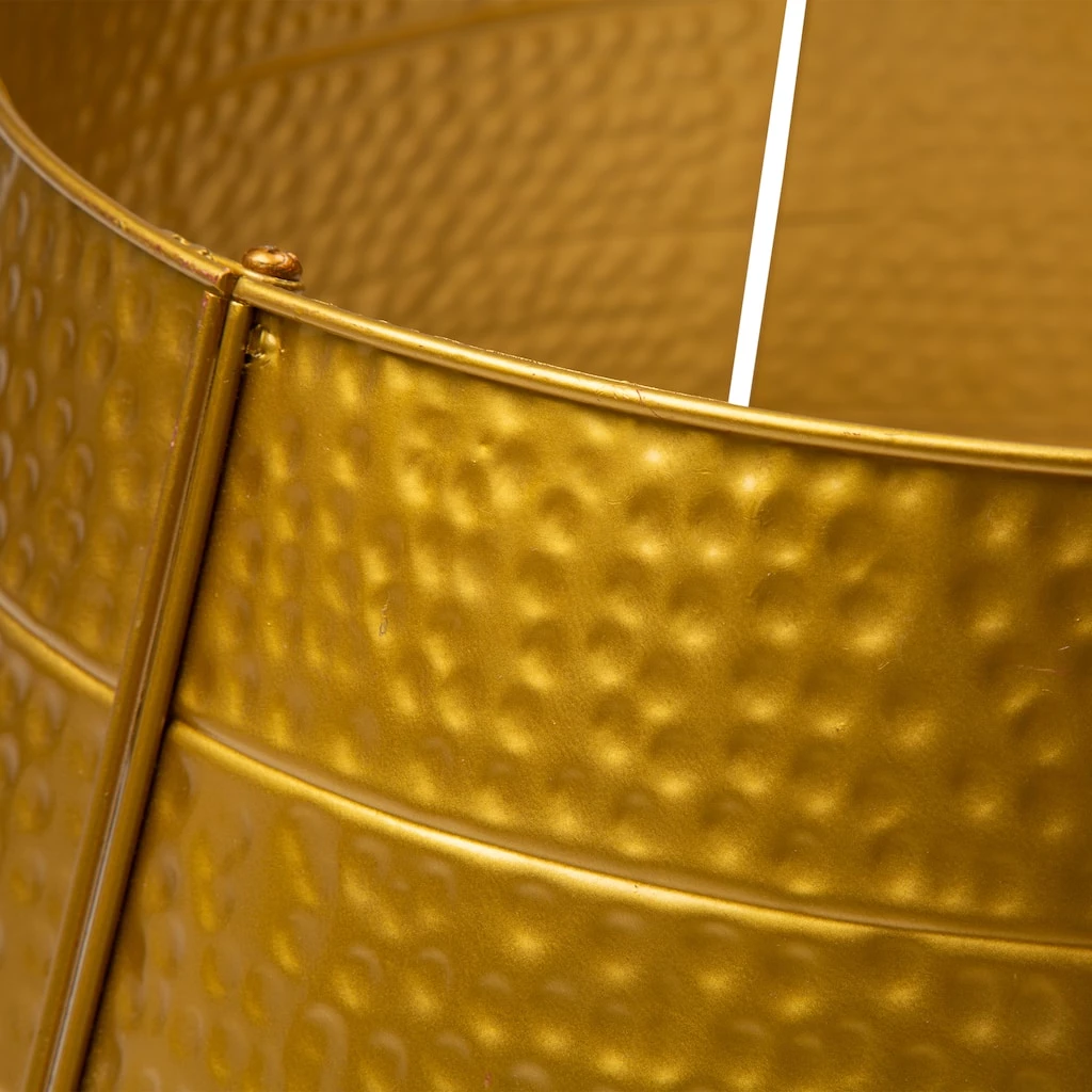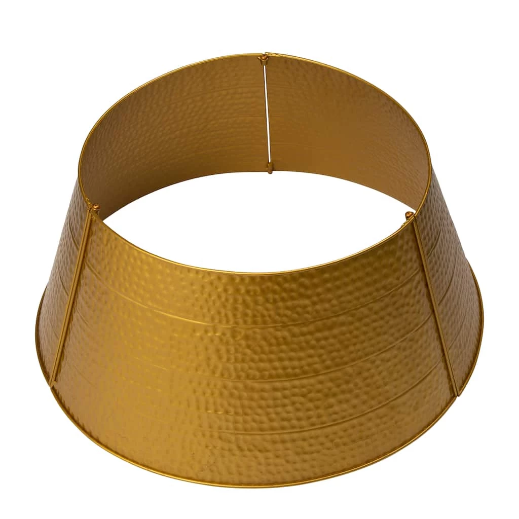 Create a unique look for your Christmas tree this year with this Hammered Tree Collar. This unique collar showcases a brilliant textured finish and a metallic sheen, giving the tree a fashionable look while maintaining the holiday spirit.