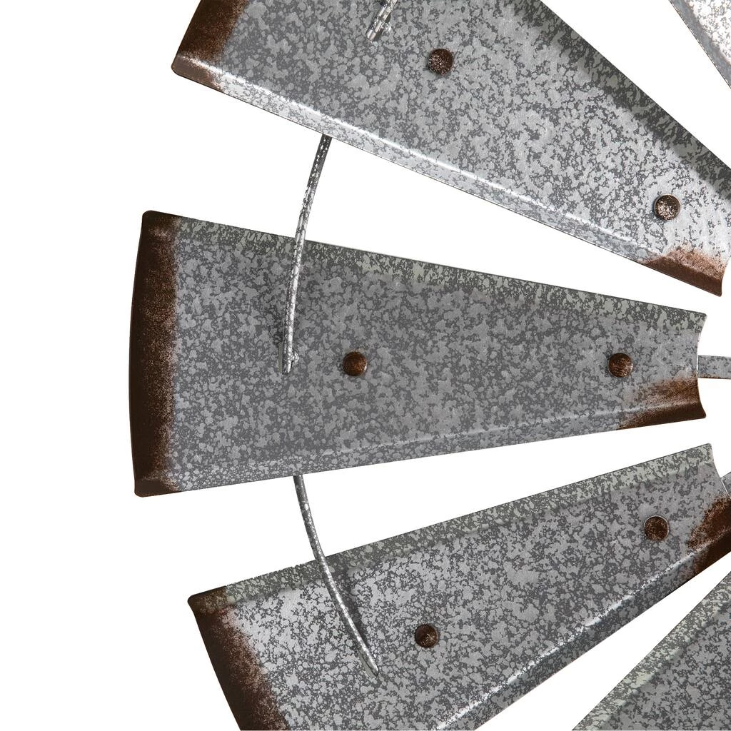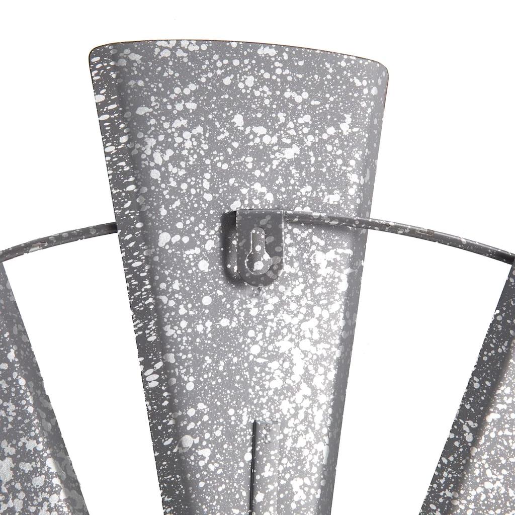 Bring the feel of a rustic farmhouse to your home with this galvanized fan-shaped wall dΓ©cor. This wind spinner is made of premium, 5 mm metal, so it’s sturdy and rustproof. The surface of the spinner has been processed with environment-friendly materials. Flanging on both sides give the fan depth. The gourd hole in the back allows for easy hanging.