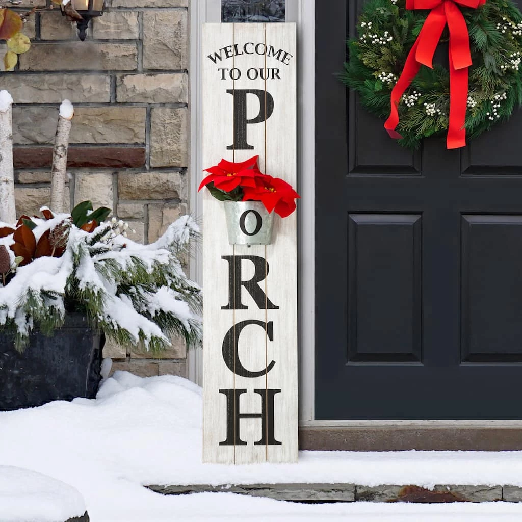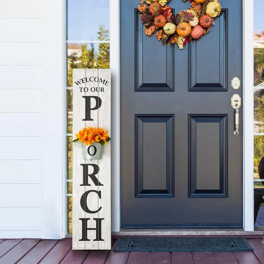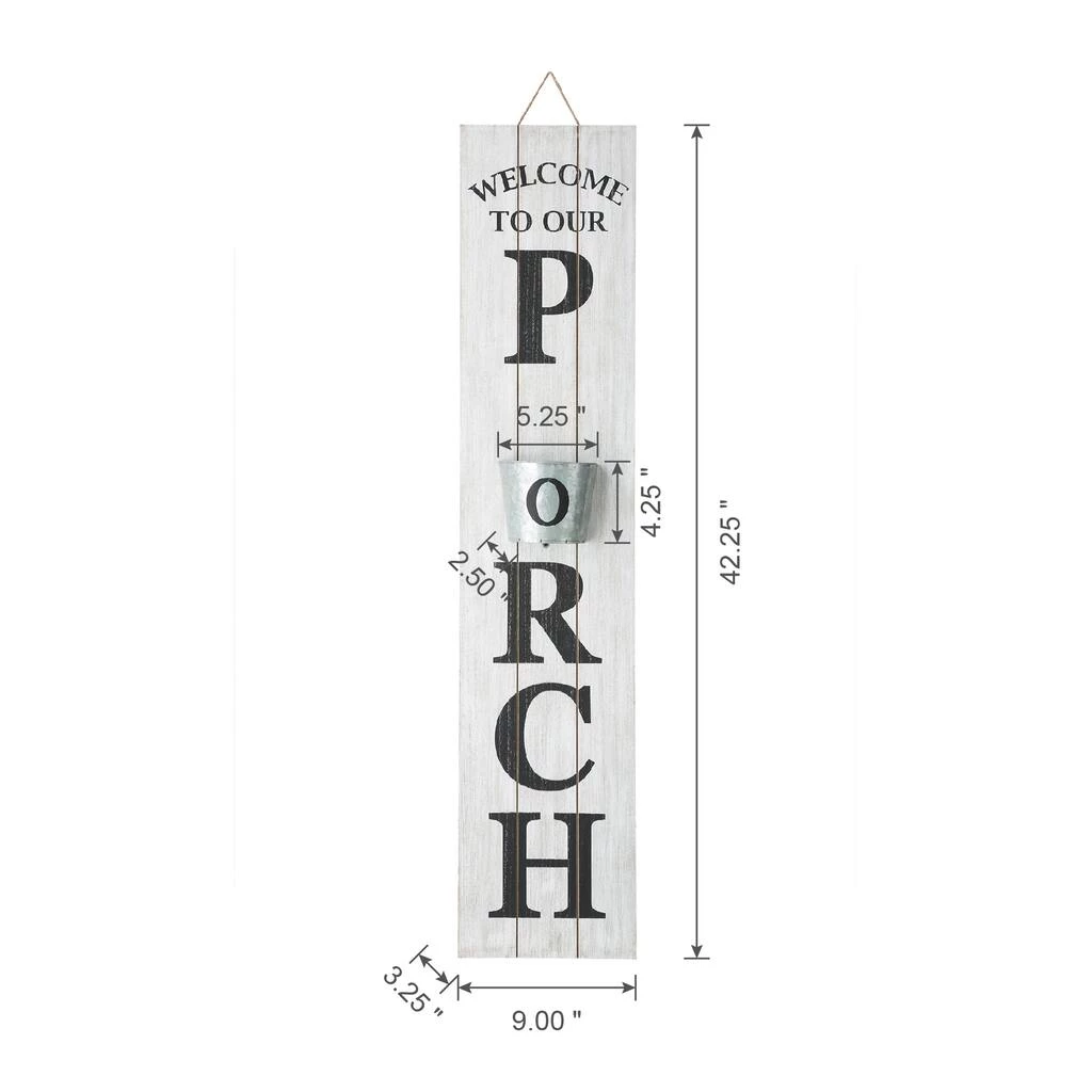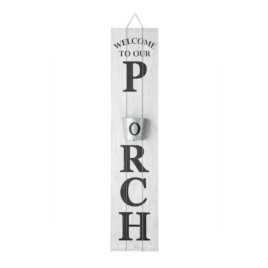 This stylish and inspirational porch sign with a small galvanized planters where you can insert different flowers to add seasonal cheer, it will be an wonderful and attractive porch dΓ©cor to welcome visitors.