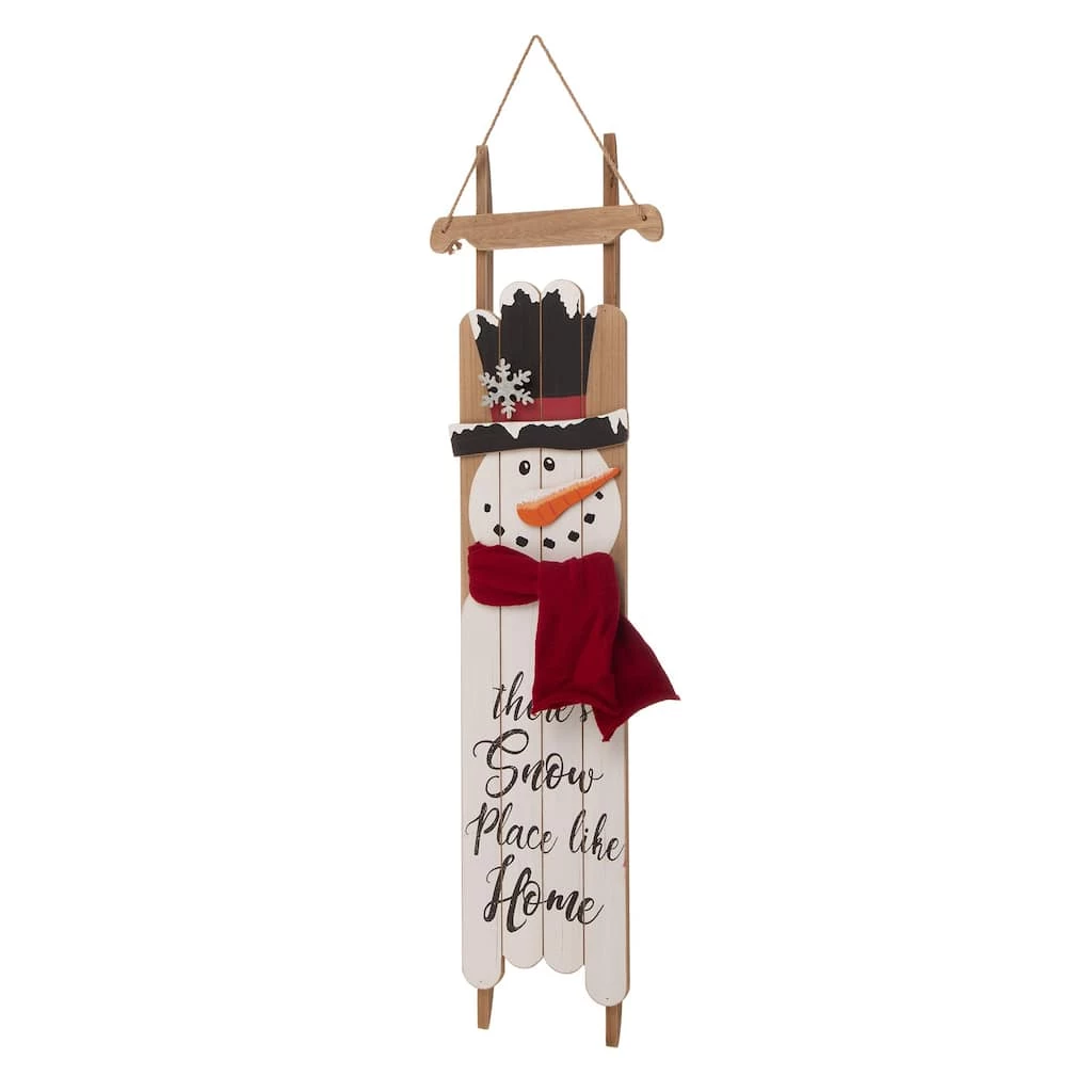 This charming snowman porch sign features the snowman on a ladder. Made of wood, the design gives a festival atmosphere. This sign makes a unique home dΓ©cor item. You can use it to decorate areas such as your loft, foyer, porch or living area.Β