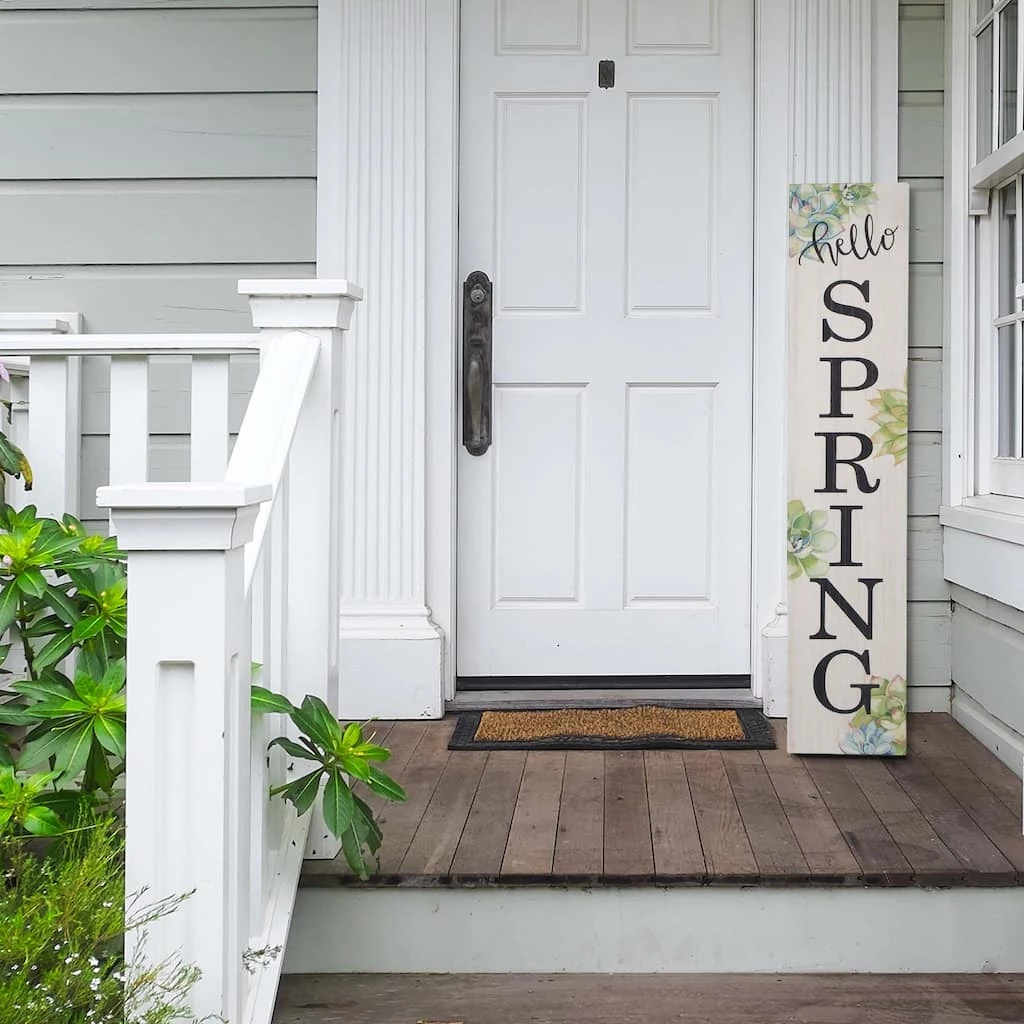 This sign features a cute typography design that reads “Hello SPRING” and crown of flowers. These lend a festive touch, perfect for a traditional or vintage style, suitable for greeting the coming of spring. This helps you create a farmhouse fresh style in your home. The hanger hook on the top makes it is easy for hanging.