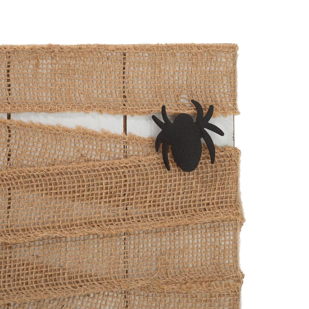 Be afraid. Be very afraid of this funny mummy face design ready to spook at your porch. Perfect for any entryway and looks great in the dark. This box shaped mummy face, wrapped with natural burlap is the perfect accent to any Halloween decoration.