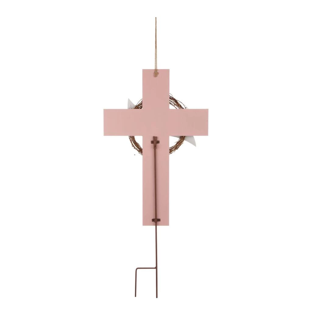Celebrate Easter with this yard stake or wall décor, featuring a cross with natural rattan and printed “HE IS RISEN” text. With a h-shaped base, this stake can be easily be placed anywhere in your garden. With a hanger hook on the top, it also can be used as wall decor. This excellent Easter gift is sure to lend a festive touch.
