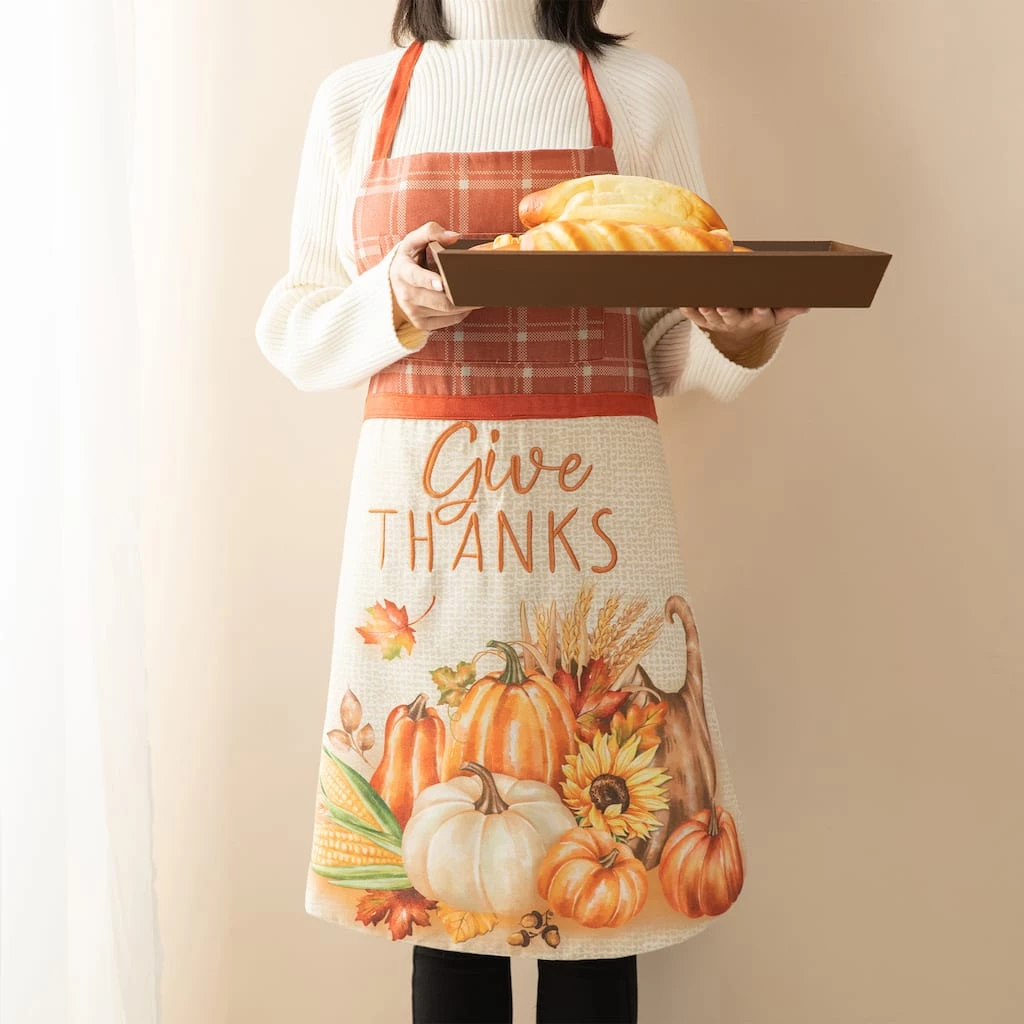 Add some fun to your kitchen with this custom Thanksgiving apron, adorned with watercolor prints and embroidered sentiments, it will be a perfect gift for your beloved ones.