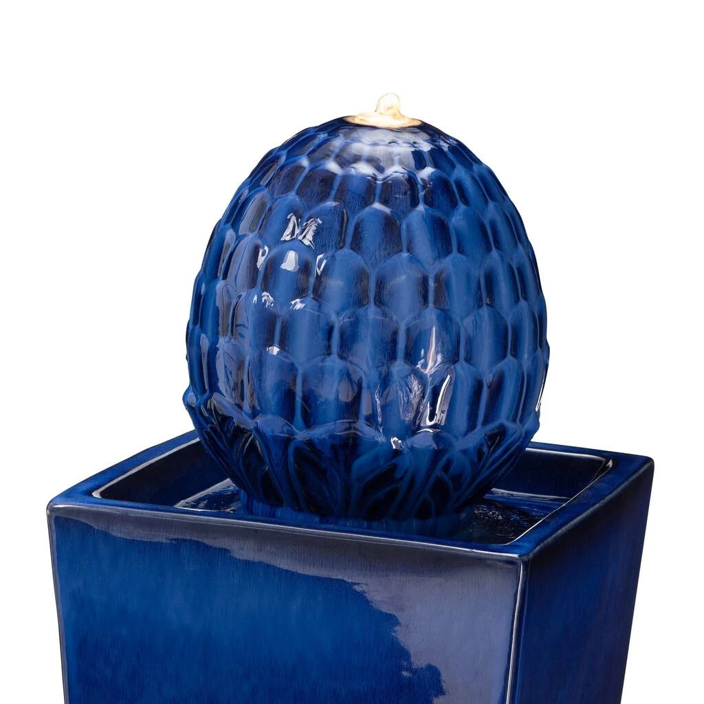 Create a calming oasis that brings an artistic touch to your space with this chic ceramic fountain. It features an elegant glaze finish that shows the charm of kiln-fire. With water flowing across the front wall and spilling into the bottom basin, the soothing sound of cascading water helps to create a relaxing atmosphere. This versatile fountain will be a delightful addition to any of your garden, patio, deck, porch or home spaces.