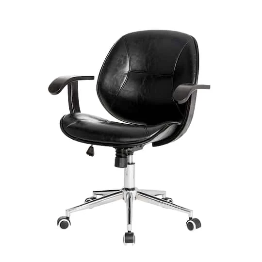 This chair features a paneled seat or back and foam cushioned, waterfall front seat, walnut plywood, and oil wax leatherette give a mid-century modern and contemporary touch to your home office or workspace. Ergonomically curved mid-back with shell walnut bentwood support, spacious padded seat, and bamboo armrest, all promise the optimum comfort from discomfort caused by prolonged sitting while working or studying.