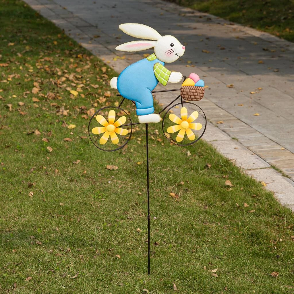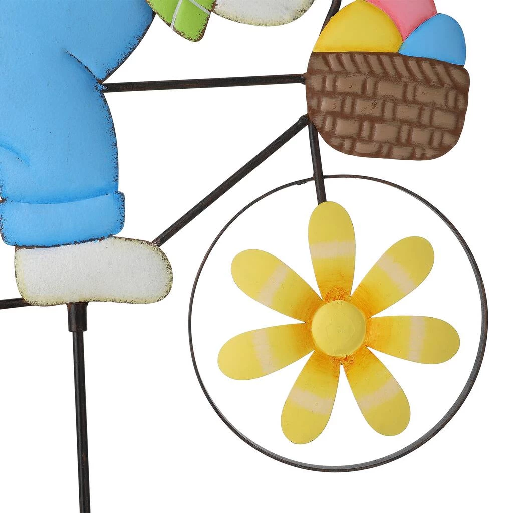 Make a statement holiday with this beautiful piece. This cute stake features a bunny riding on bicycle with some eggs in the basket. The stakes can easily be planted into the ground as a yard stake or for use as wall dΓ©cor.