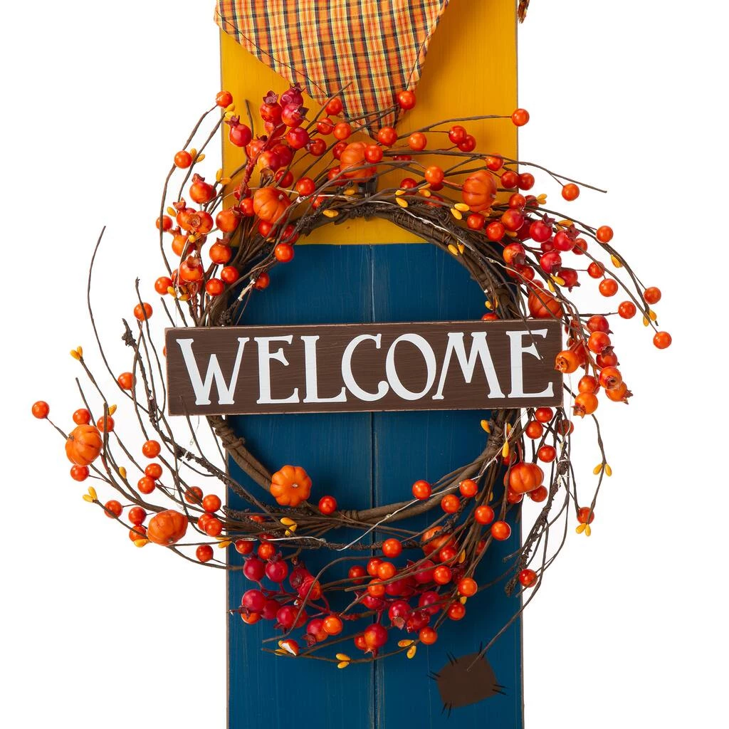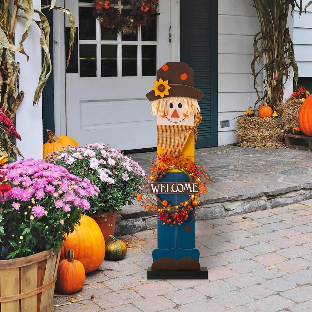 If you’re looking for a gorgeous addition to your porch, look no further than this cute Porch décor. Features a lovely scarecrow holds a lighted wreath with Welcome sign. Help you make happy atmosphere by decorating the porch, garden and other decorations, a good Holiday gift for friends and family. Greet guests and passersby with a message of seasonal cheer with Scarecrow and WELCOME porch sign.