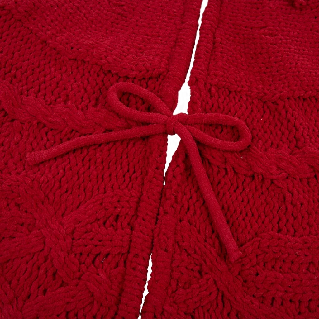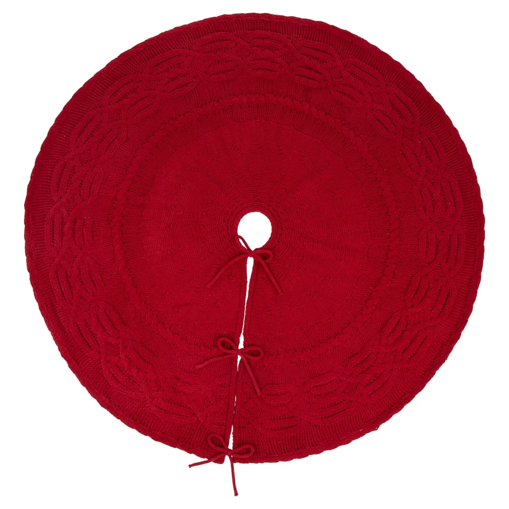 This red knitted Christmas tree skirt is perfect for displaying under a beautiful flocked pine tree. Embellish your tree with sparkly ornaments to fully accentuate the tree skirt.