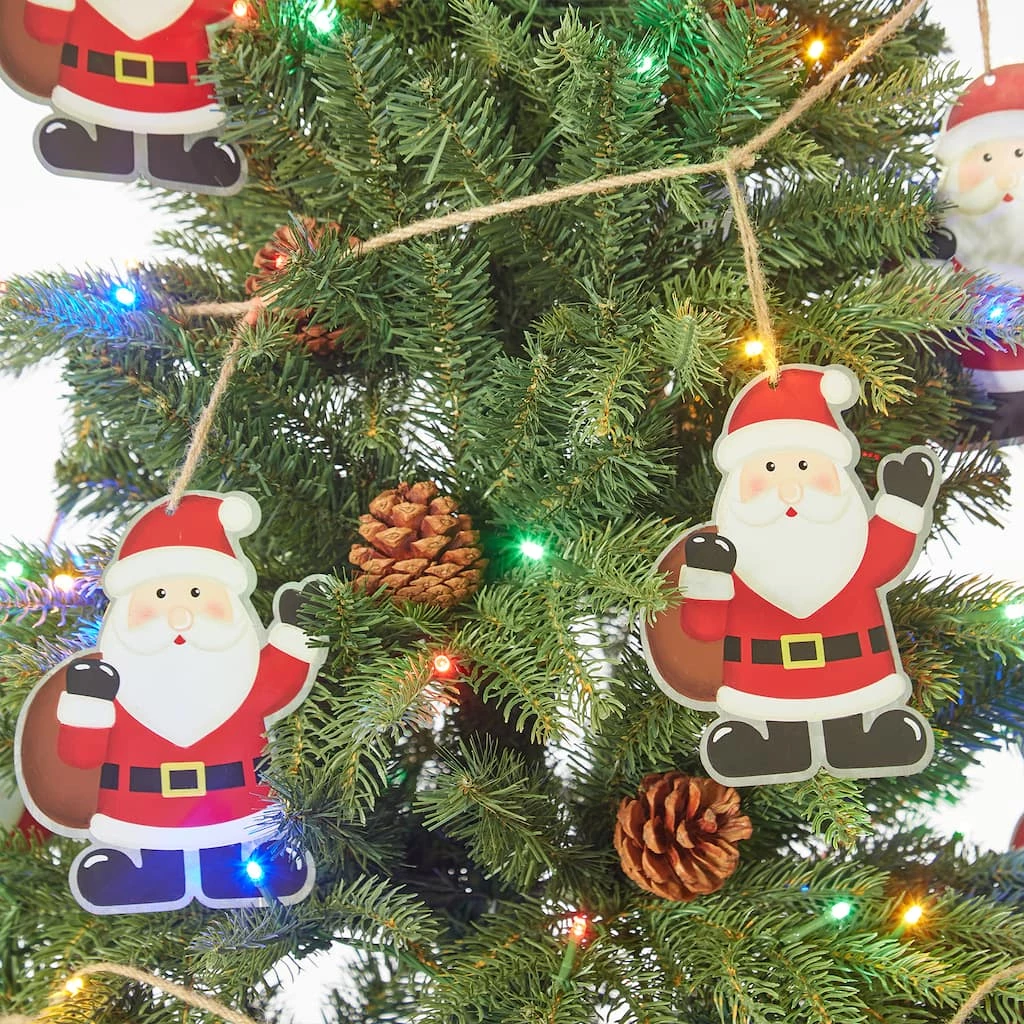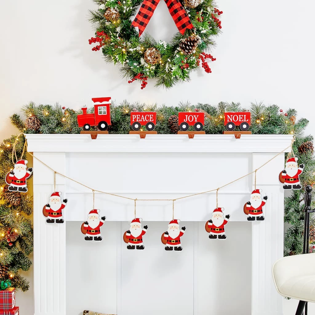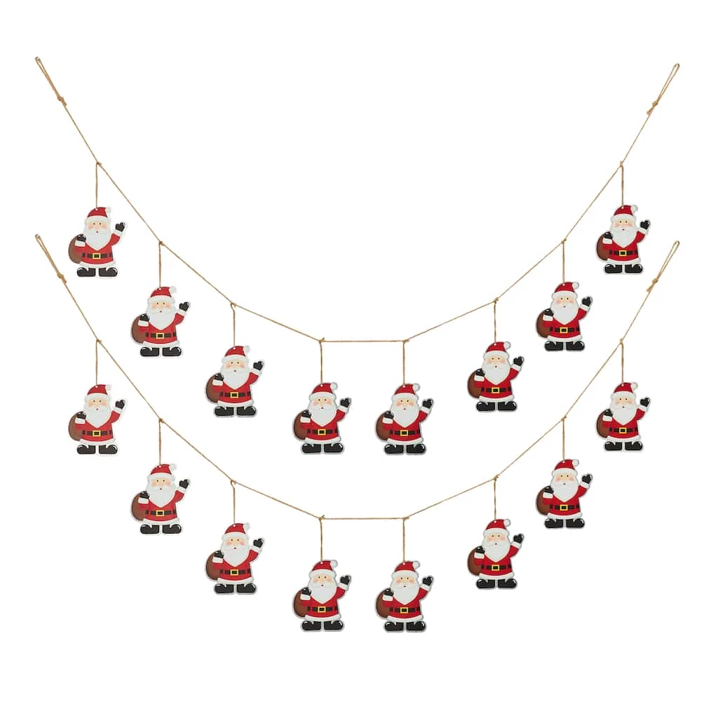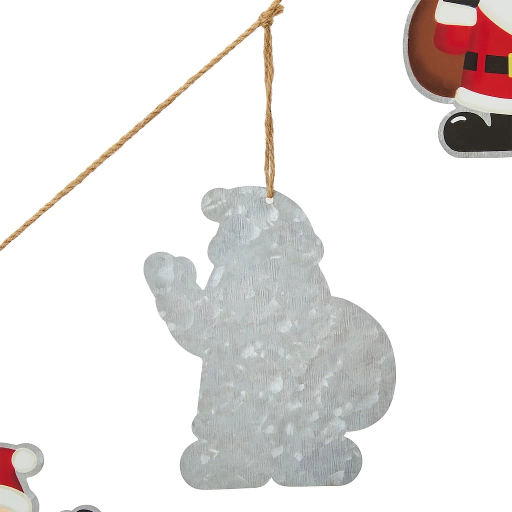 Enjoy decorating your holiday home with this Christmas santa garland. It features 8 metal Santas of traditional look and color, with one of his hands waving and greeting to your family members and guests. Hang it on the wall or fireplace mantel, or in front of the window.