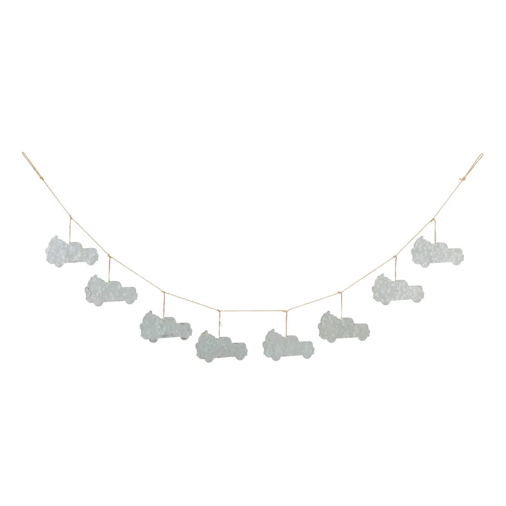 Decorate for the holiday season with rustic accents that keep your space festive and fun. Metal Truck Garland features a jute strand adorned with shaped metal trucks. Hang this garland strand on your mantel, or place it as part of a centerpiece on a table for a fabulous, festive look.
