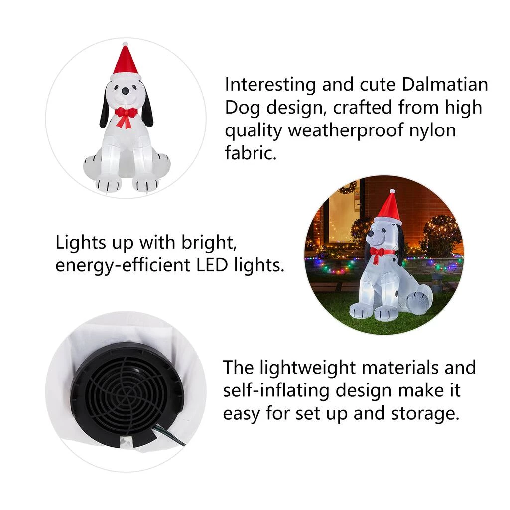 Deck the yard with an Inflatable Puppy Dog! Dressed for the season, this classic Puppy Dog inflatable makes a delightful addition to your outdoor Christmas decorations. Setup is super simple. Just plug it in, stake it down and watch the magic unfold. Display this charming holiday decoration as a standalone or combine it with other Inflatables to create a custom scene. Includes everything needed for easy outdoor setup.
