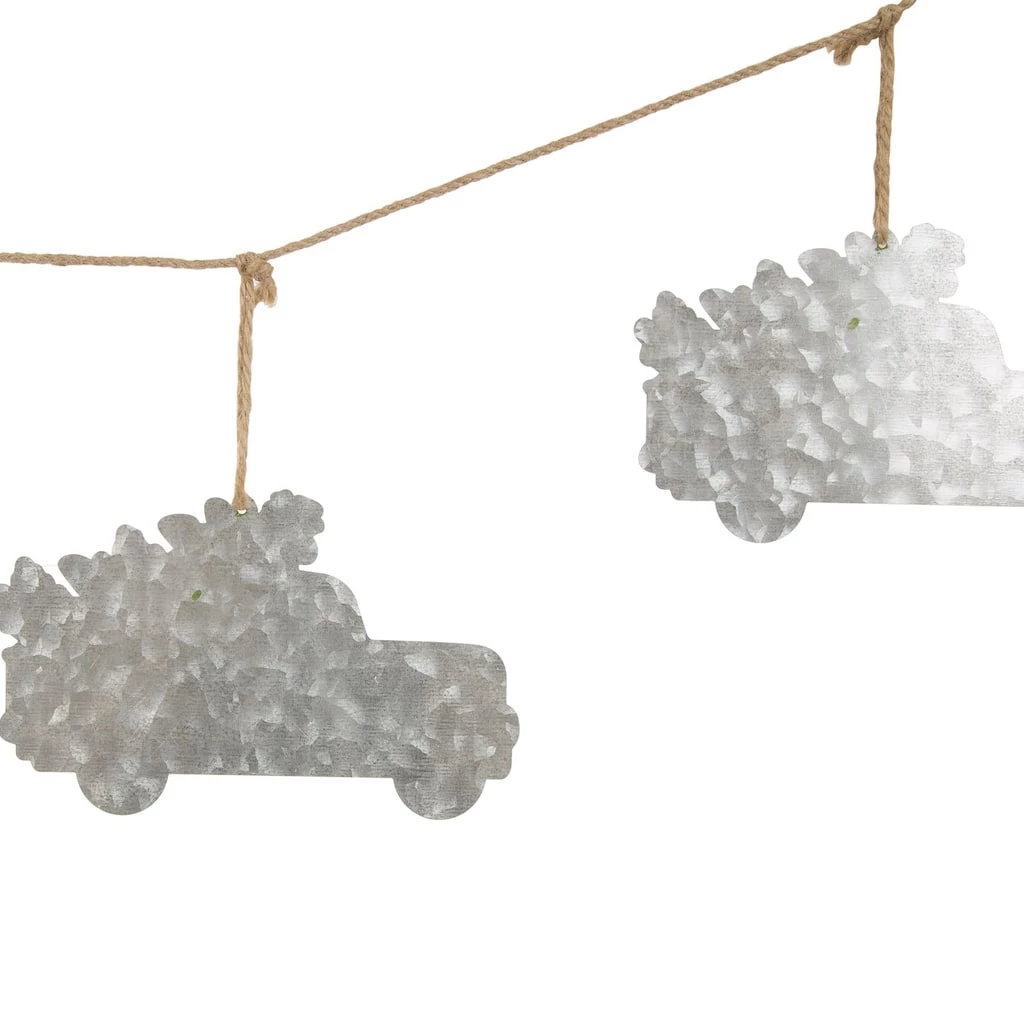 Decorate for the holiday season with rustic accents that keep your space festive and fun! This garland features a jute strand adorned with shaped metal trucks. Hang this garland strand on your mantel, or place it as part of a centerpiece on a table for a fabulous, festive look!