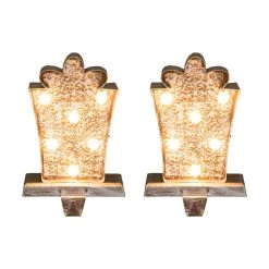 This set of 2 metal Tree Gift box stocking holder is made to decorate your home in the special season with classic design. Sturdy holder can withstand heavy stockings. Crafted with a unique holiday cheer creating beautiful memories to treasure for years to come.Β Β