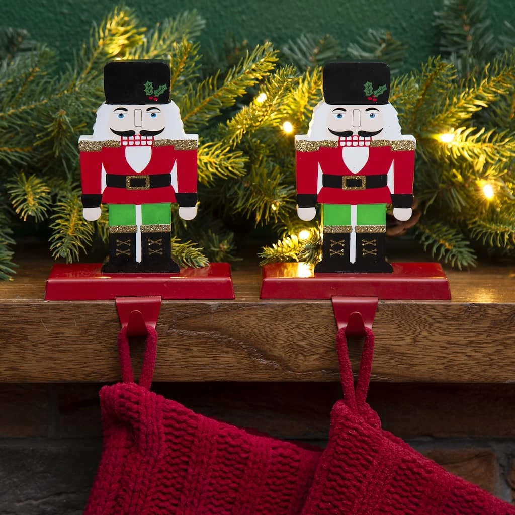 This set of 2 wooden and metal soldier stocking holder is a cute festive way to add your holiday dΓ©cor and accent your Christmas stockings.