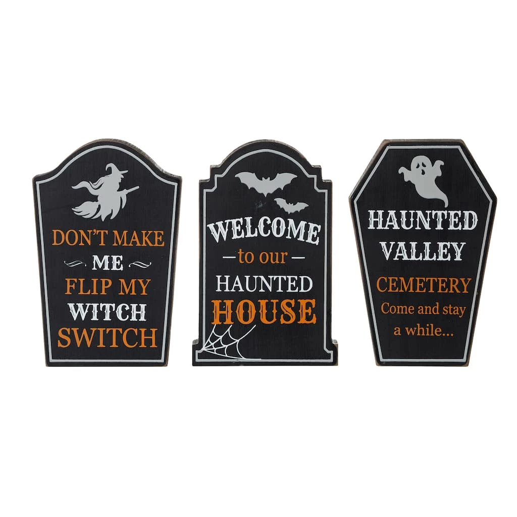 To create a Halloween feel with this wood tombstone standing decor. It gives the sign a lot more of Halloween look and feel. Decorate your Halloween party with this classic tombstone set.
