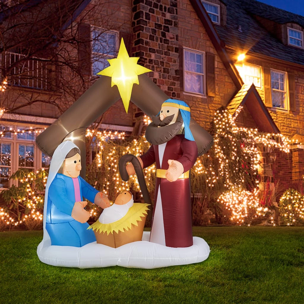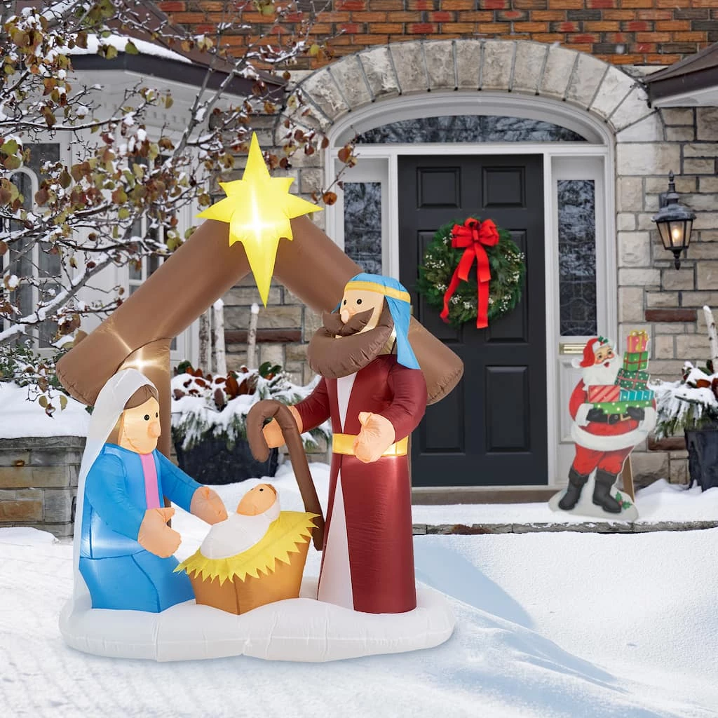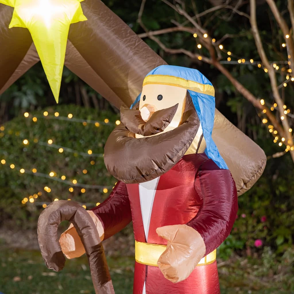 Get ready to rumble this holiday season with this cute inflatable Nativity. Long-lasting LED lights illuminate the piece for extra visibility and merriment. It self-inflates in minutes and includes accessories such as stakes and ropes so you can use it right out of the box. At the end of the season, the decoration quickly deflates and flattens for easy storage.