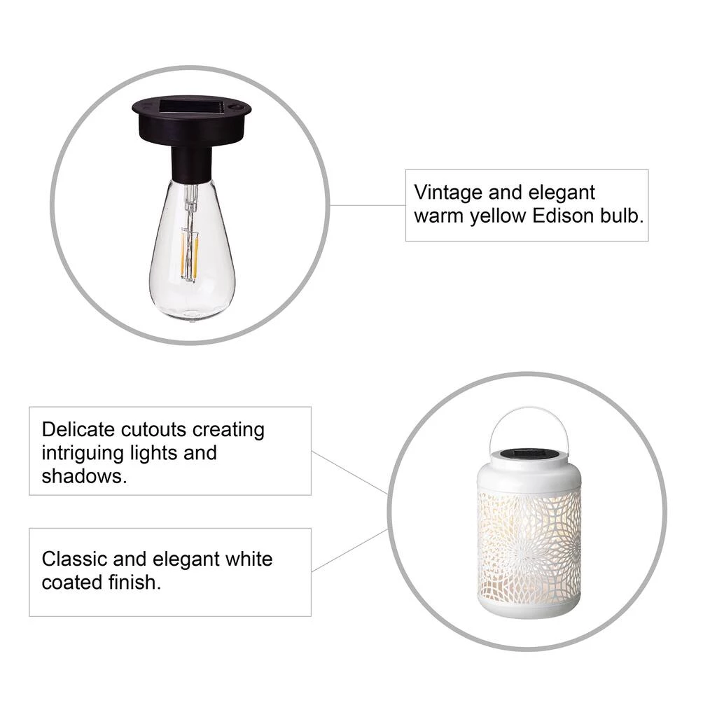 This classic solar lantern with delicate cutouts creating intriguing graphic shadows, adds artisan beauty and flickering drama to your outdoor space that is sure to convert your garden, patio or yard to be a bright, charming and delightful environment, it will be a great addition for your dining table, cocktail time or yard games!