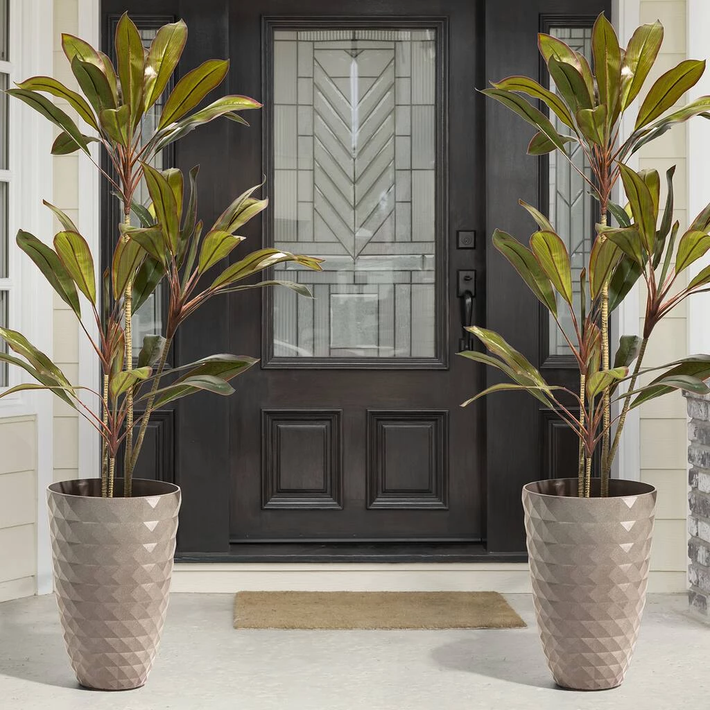 Enhance your indoor or outdoor space with this stylish set of two plastic tapered fluted planters. It’s crafted of 100% recyclable PE and stone mixture, which is eco-friendly, safe and healthy. Compared with traditional planters, it is lightweight, chip-resistant, durable and with sturdy UV protected structure, ideal for all year around. It’s featured with imitation terracotta. The natural finish is more in line with various decoration styles. A pre-drilled drainage hole is included. Plant your favorite greenery or blooms to create an intriguing and vivid landscape that is sure to convert your your garden, patio or home space to be a beautiful, delightful and relaxing environment.